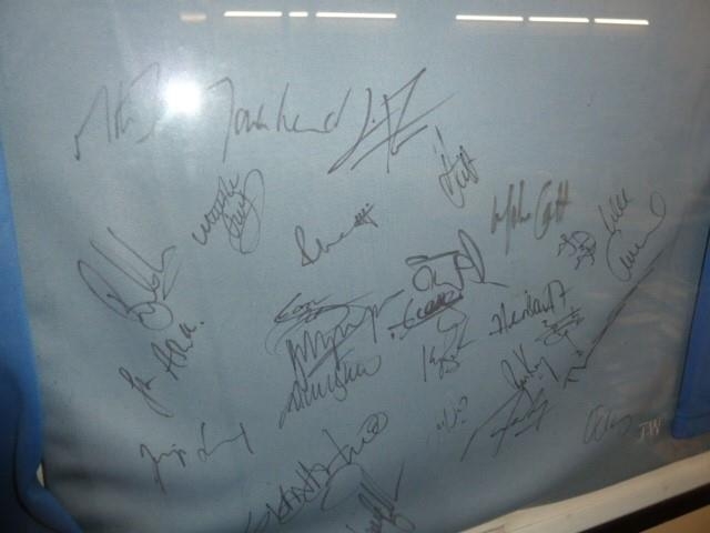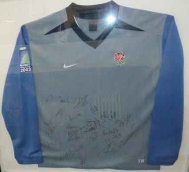 England Rugby World Cup 2003 away shirt with team signatures, framed, 80cm x 90cm