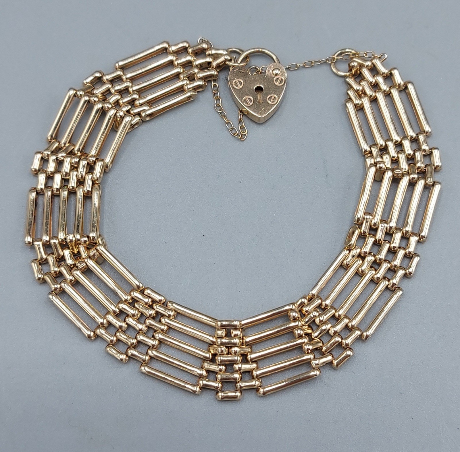 A 9ct gold gate link bracelet with padlock clasp, 9.4gms