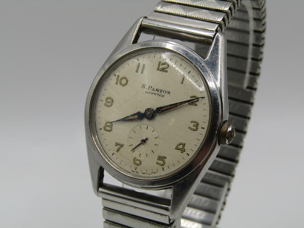 S PARTON OF NORWICH STAINLESS STEEL CASED GENTS WRISTWATCH