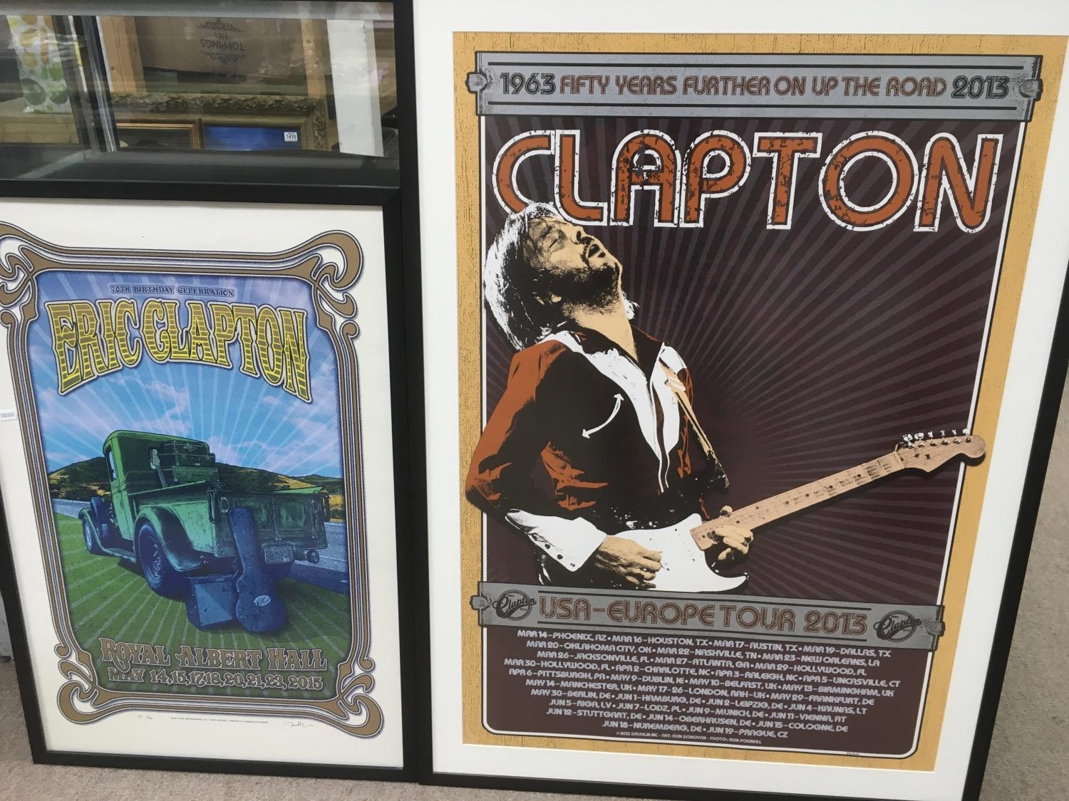 Two framed and glazed Eric Clapton tour posters from 2013 and 2015.