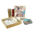 Postcards, stamps, coins, trade and cigarette cards. A mixed lot comprising:Approx. 30 postcards including some real photographic Devon and CornwallStamp album plus loose stampsSmall quantity of trade and cigarette cardsBag of coins - mostly Great Britain coinage including couple of modern crowns, two silver 6ds, £2 coin and a bag containing in excess of 7 euros.Lot also includes two books: 'Adventures in the Rifle Brigade' and 'Scott's Poetical Works'.