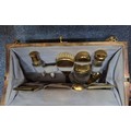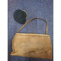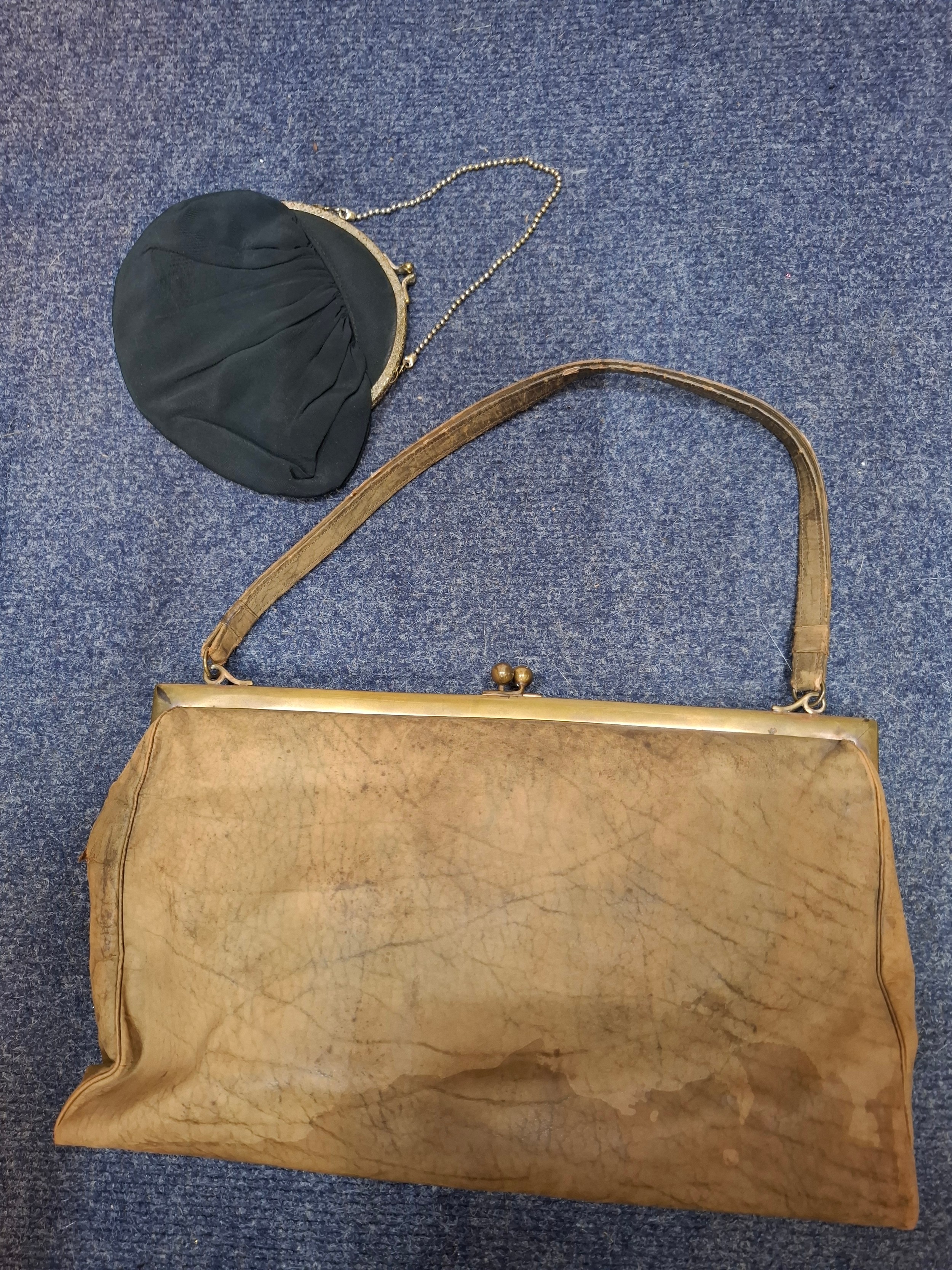 The blouse requires attention due to holes in lace, ribbon missing from fan, stains and holes to vanity handbag