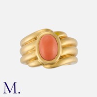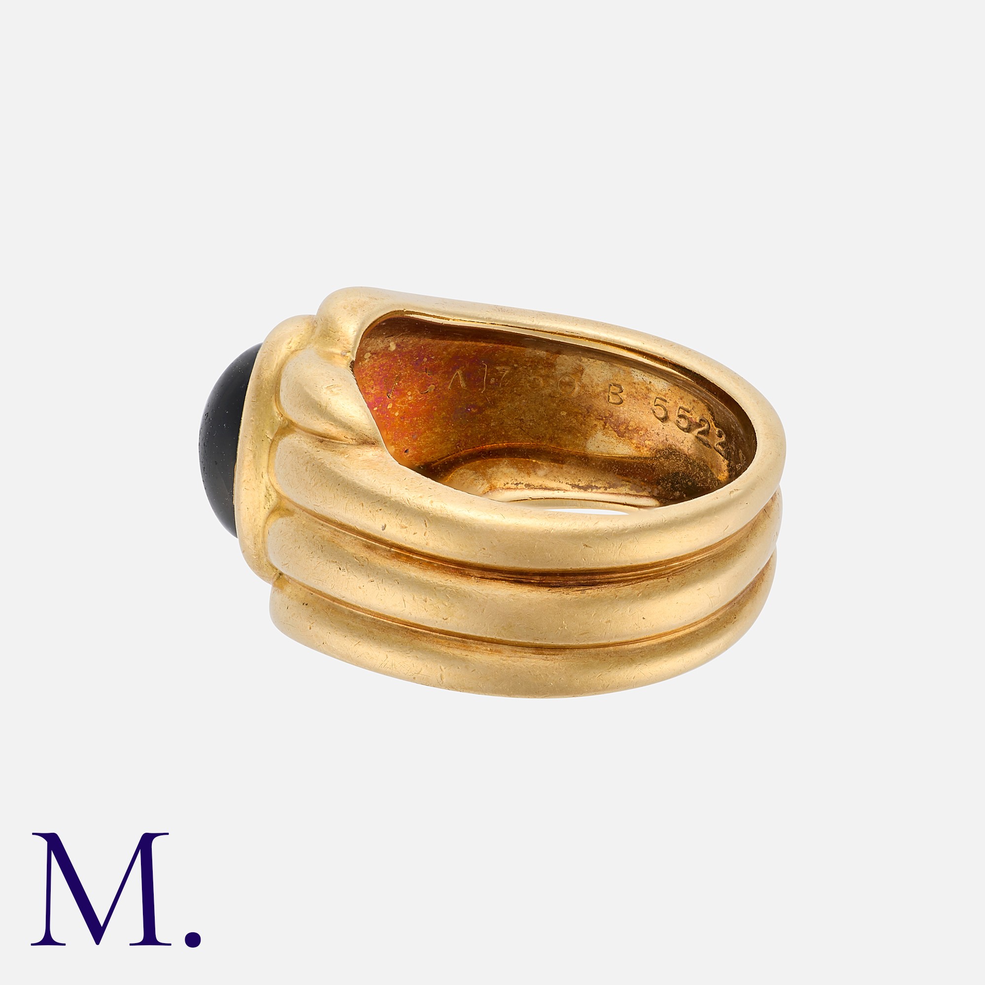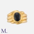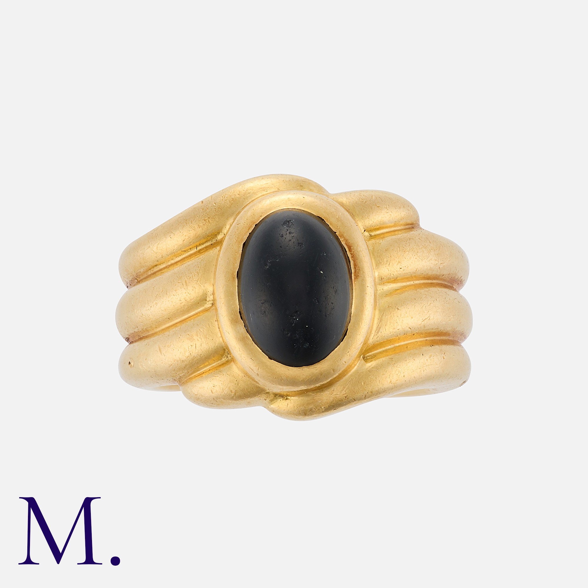 VAN CLEEF & ARPELS. An Onyx Ring in 18K yellow gold, set with a cabochon onyx to the centre with fluted band. Signed VCA, 750 and serial numbered.