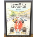 A vintage Formula 1 poster for the 1978 Monaco Grand Prix, by AIP Monaco, 57.5cm by 39cm.