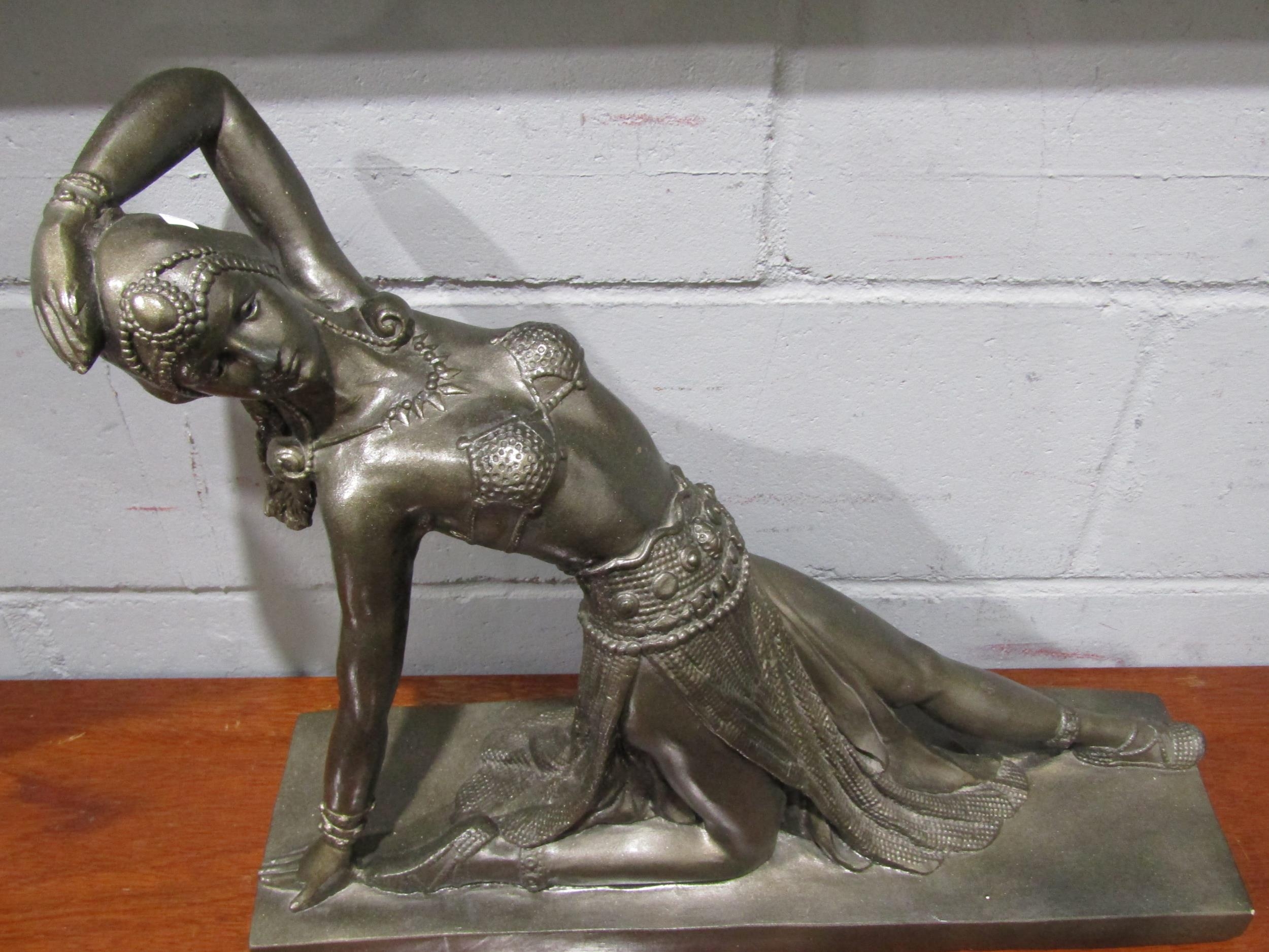 A reproduction bronze effect plaster statue of Deco dancer after Chiparus, 45cm tall