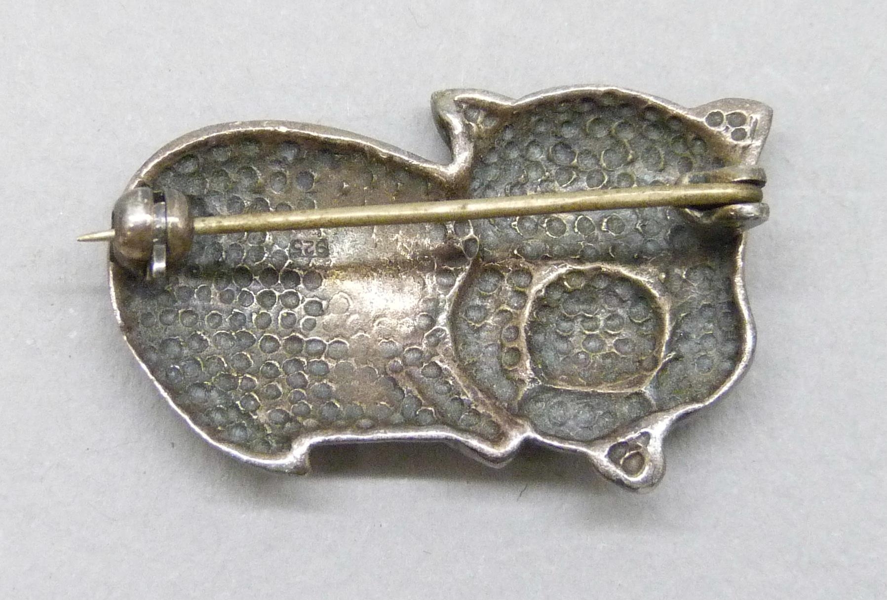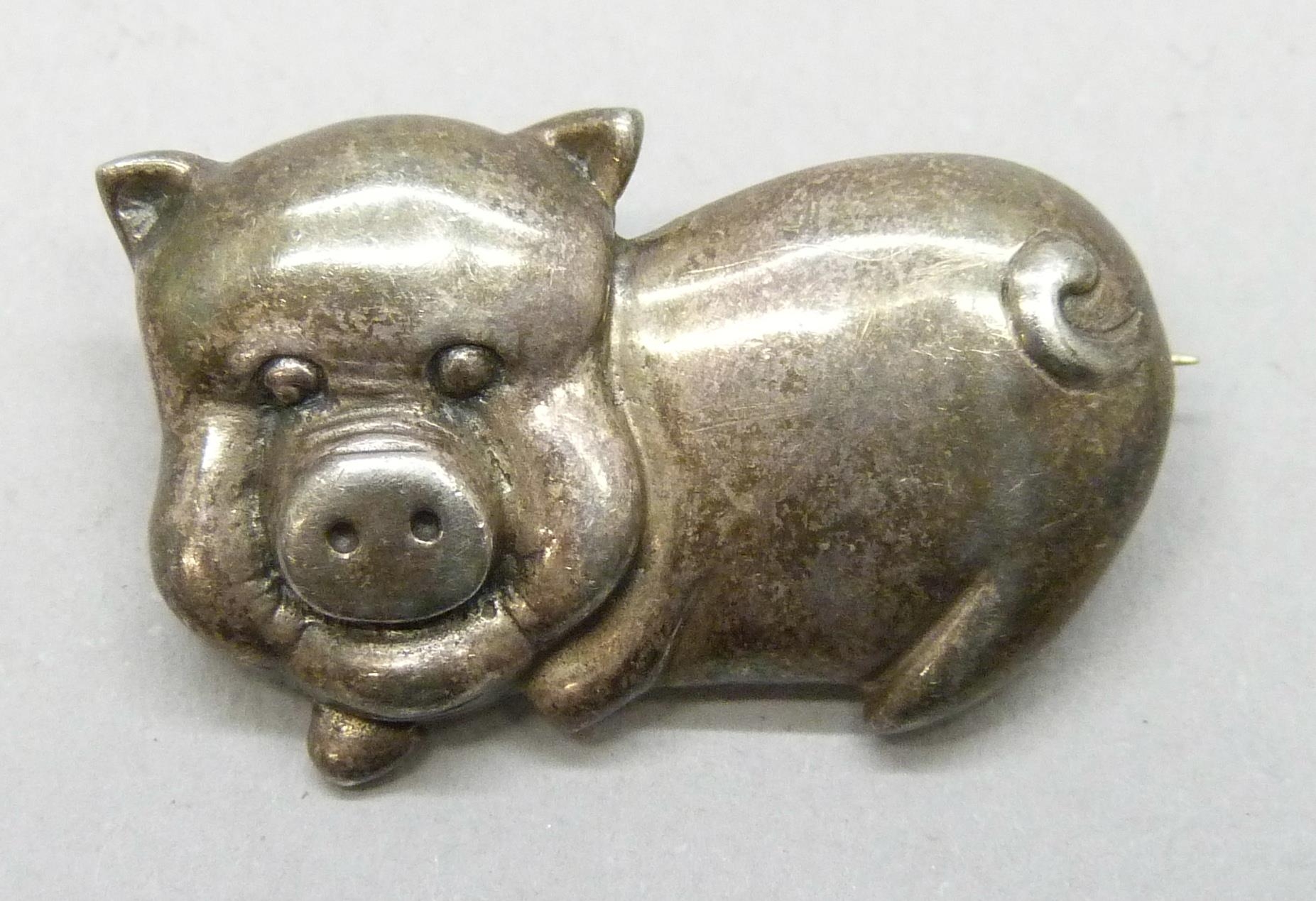 A white metal animal brooch in the form of a pig, tests as silver, 3cm