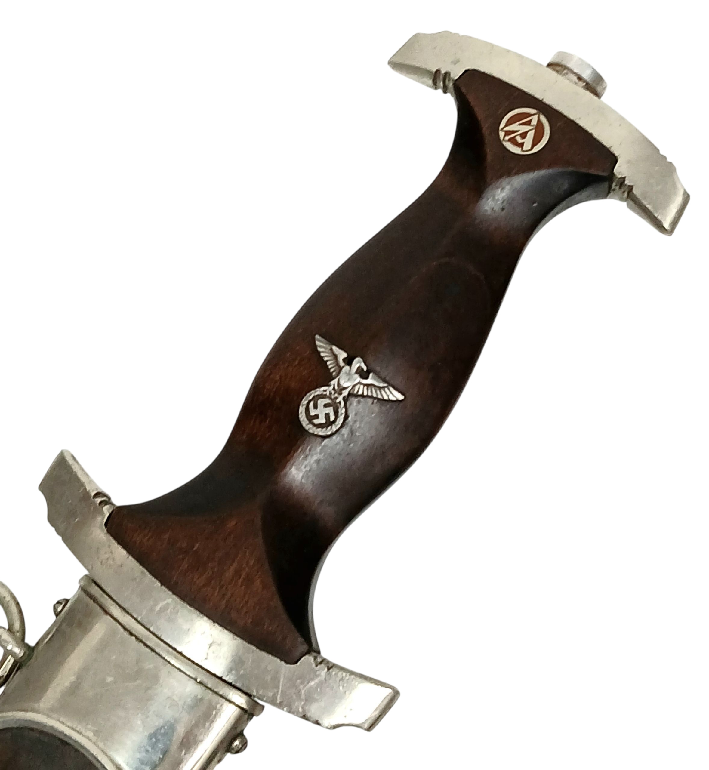 the letter "A". An early SA Eagle let into the handle and a chemically plated scabbard.