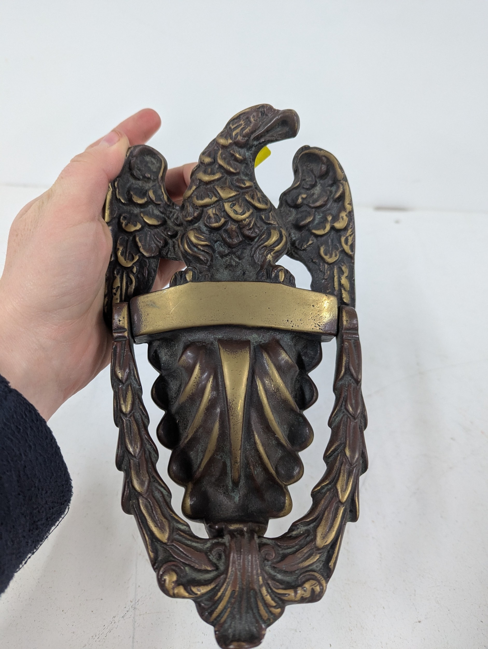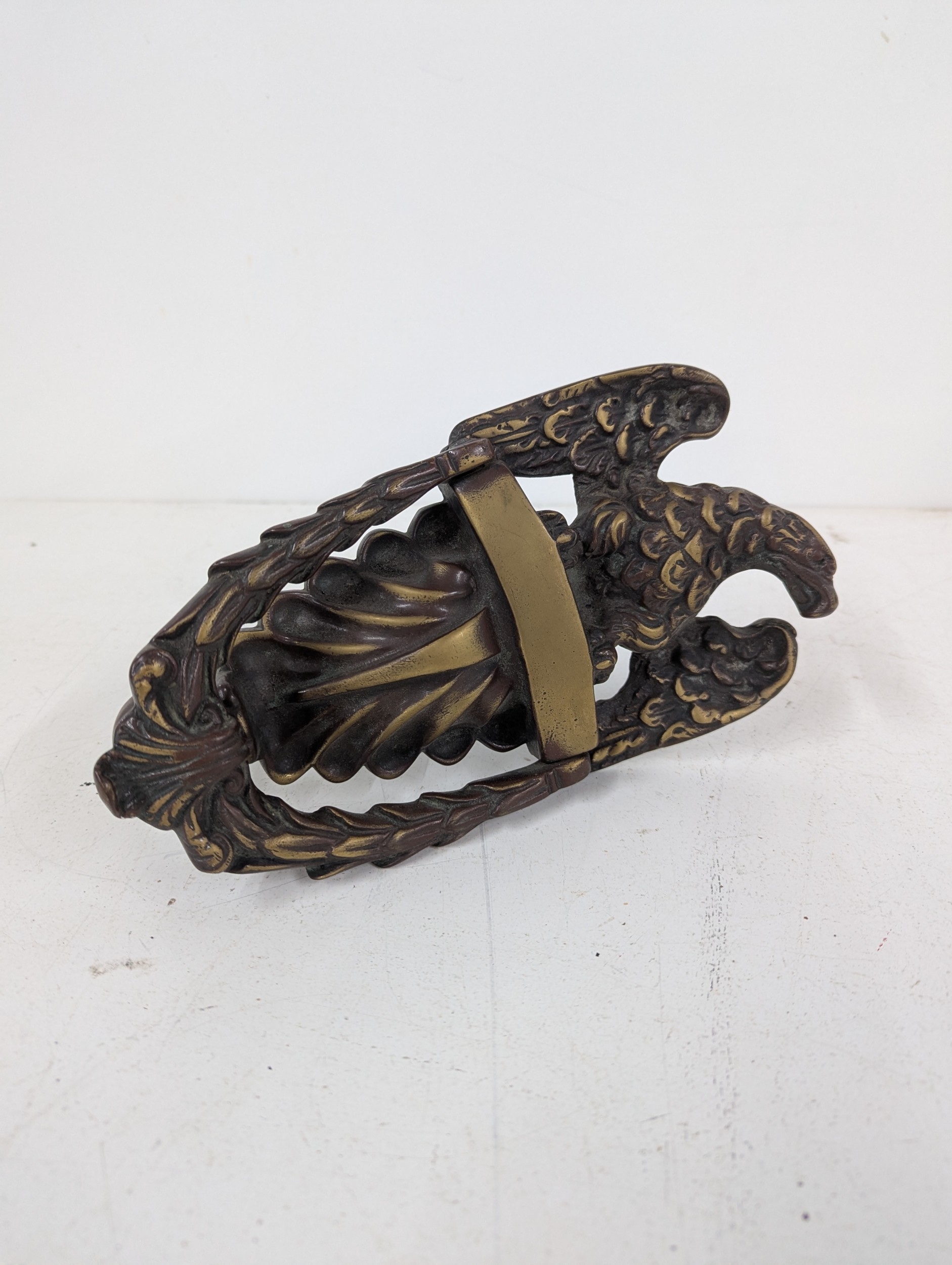 A large 19th brass door knocker fashioned as an eagle, 23cm L