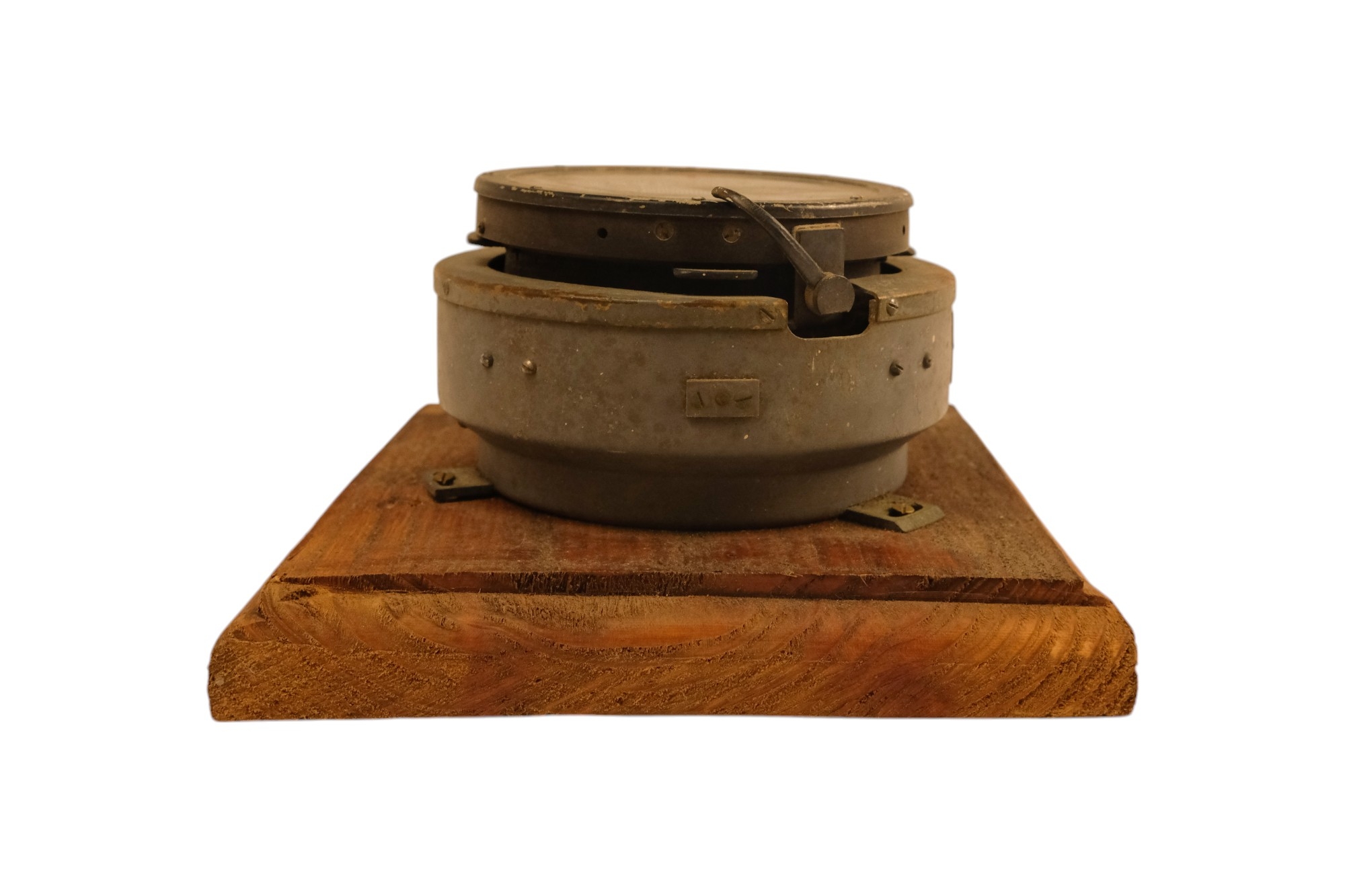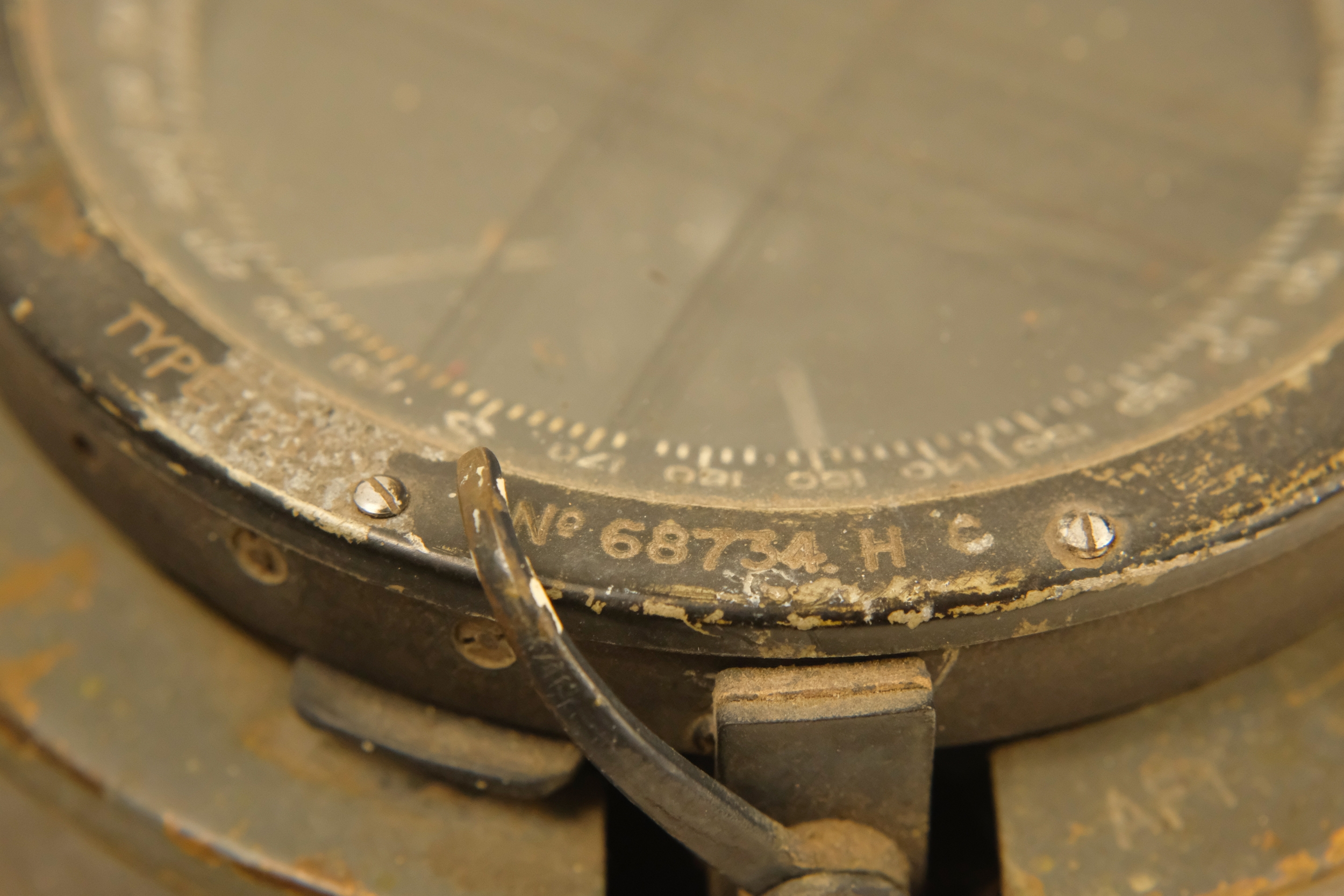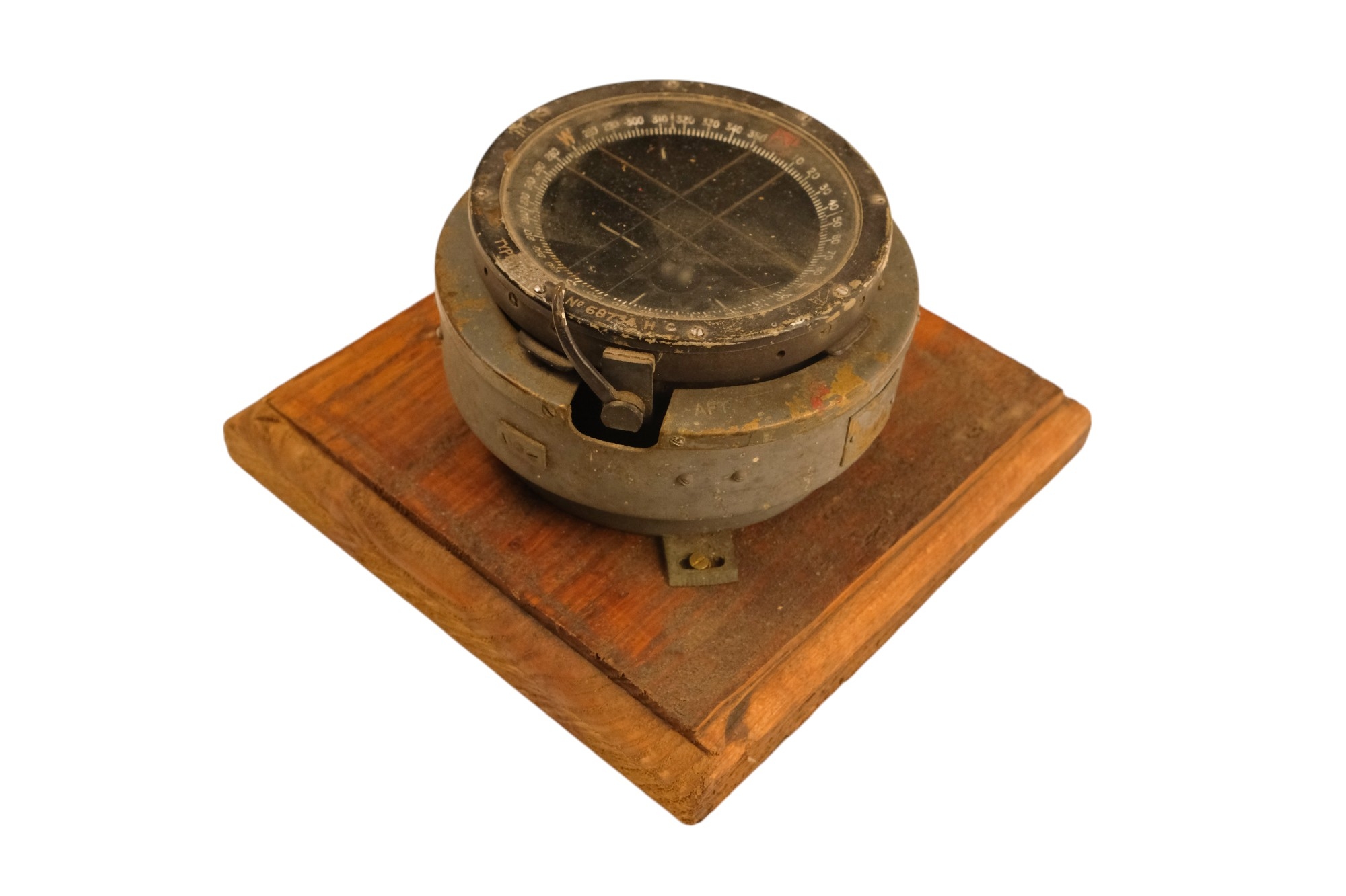 An Air Ministry WWII P type compass - mounted on a later pine base, 15cm diameter.