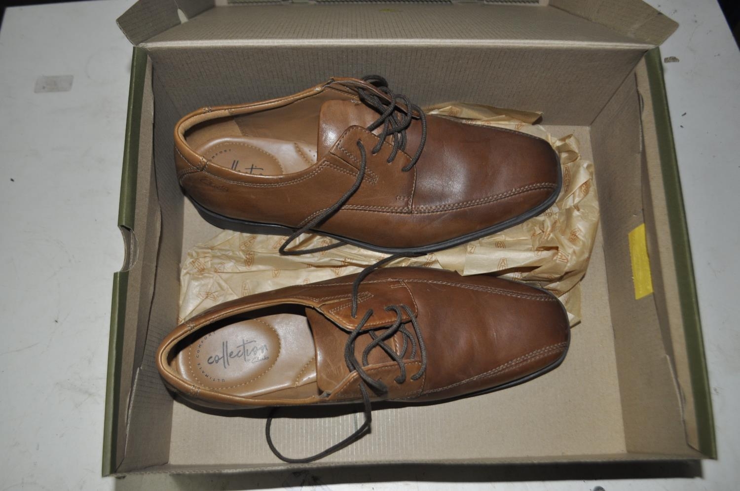 PAIR OF GENTS LEATHER BROWN SHOES BY CLARKS