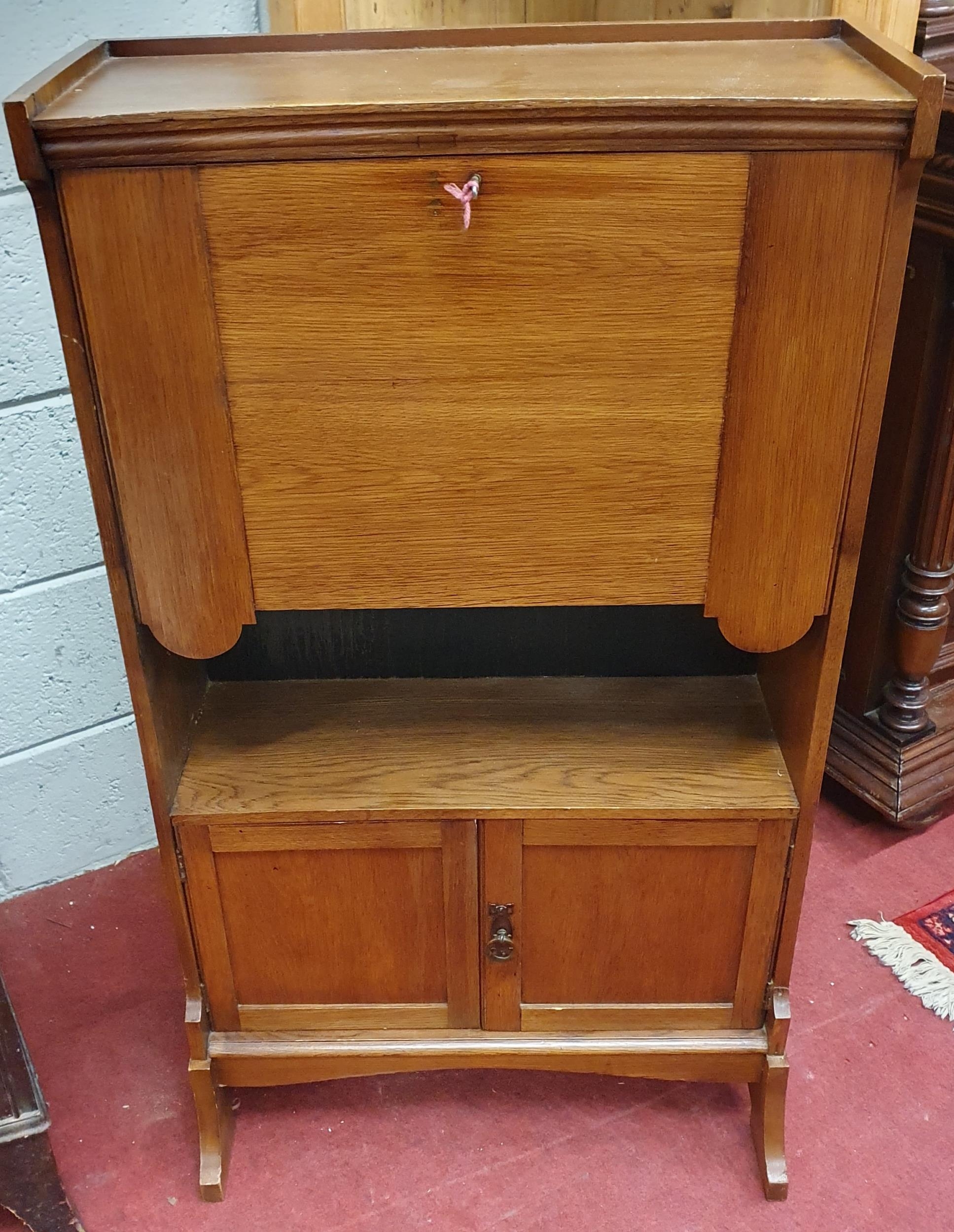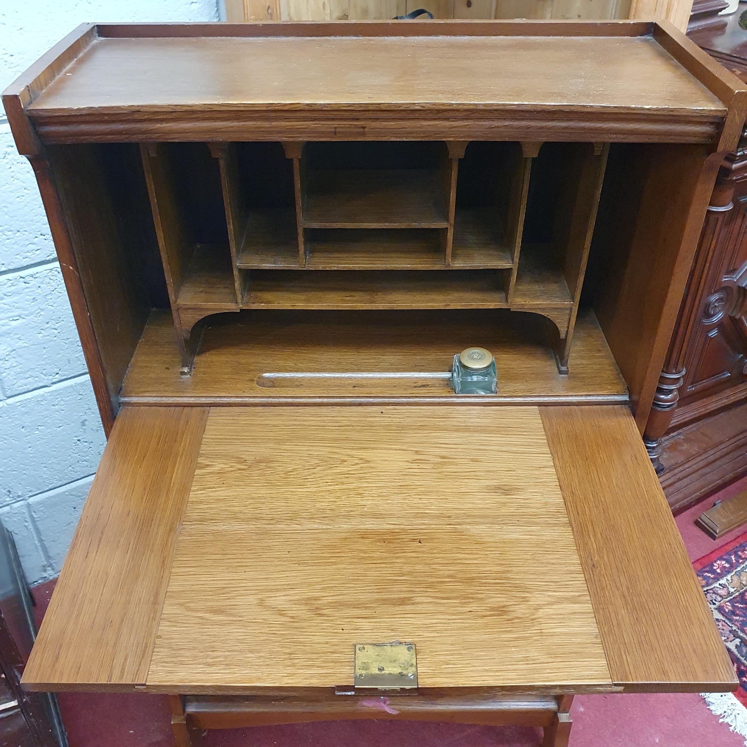 An early 20th Century narrow Oak Ladies Writing Desk with panel base and fall flap front. 61 x 23 x H 111 cm approx.