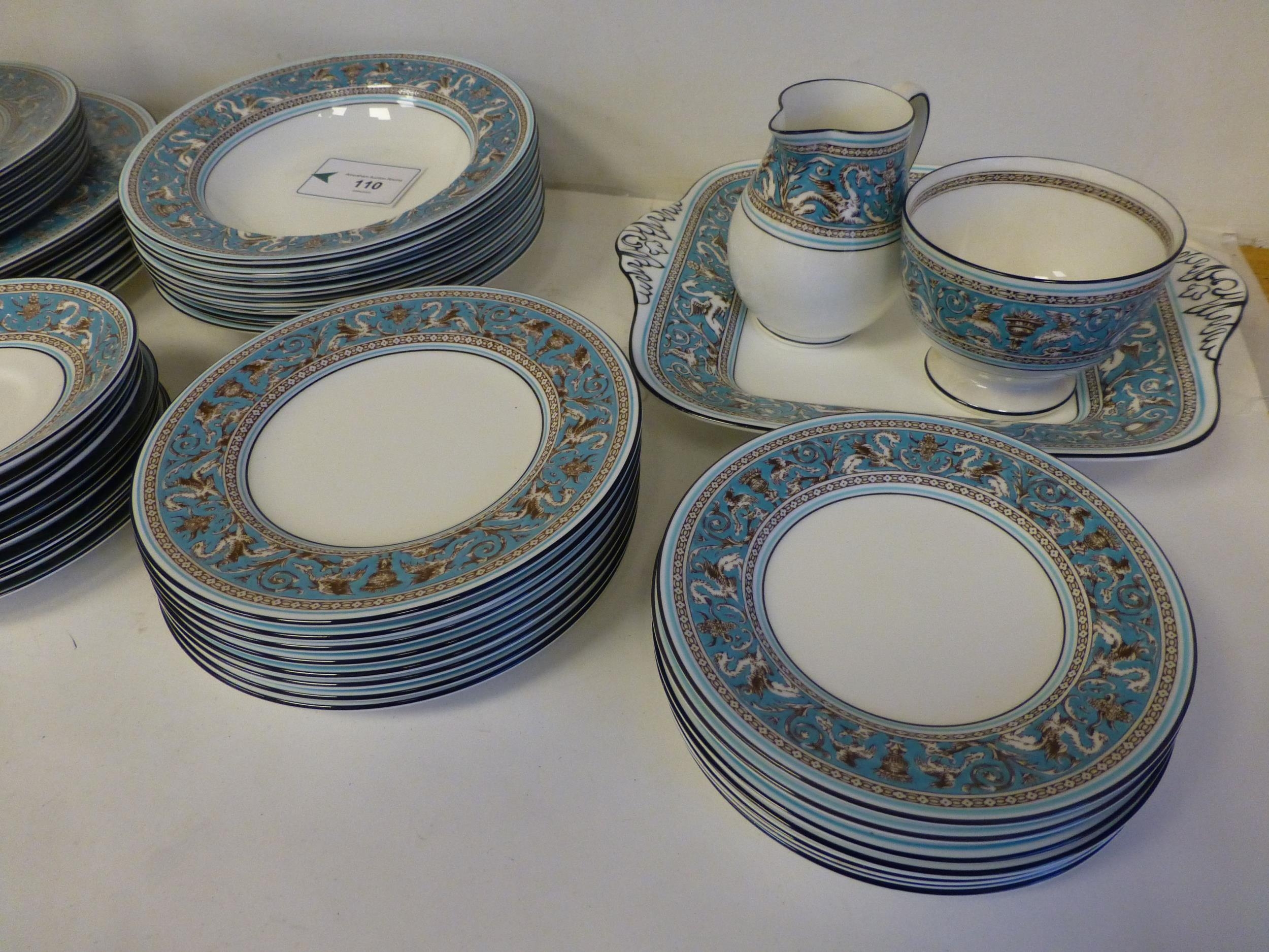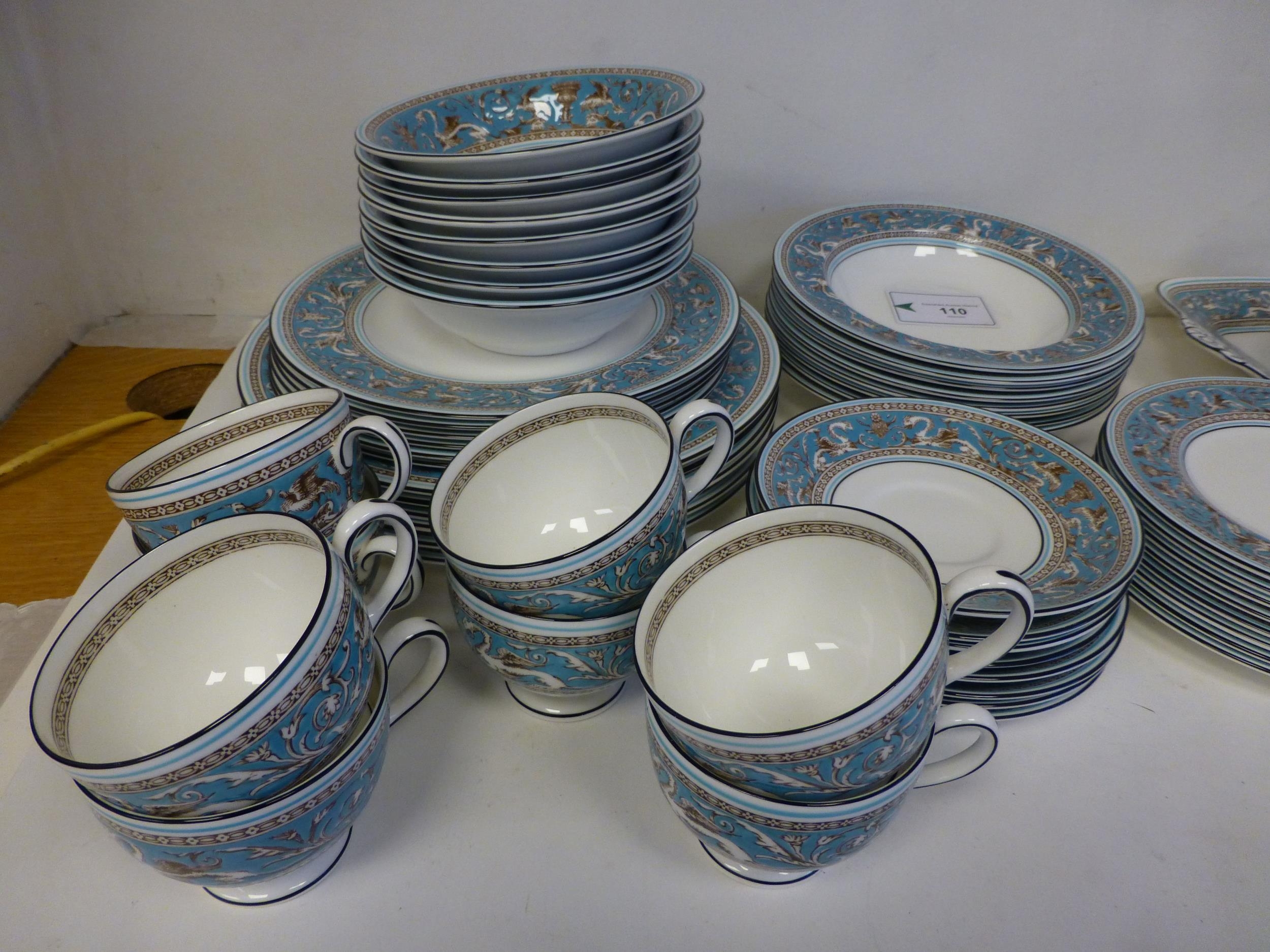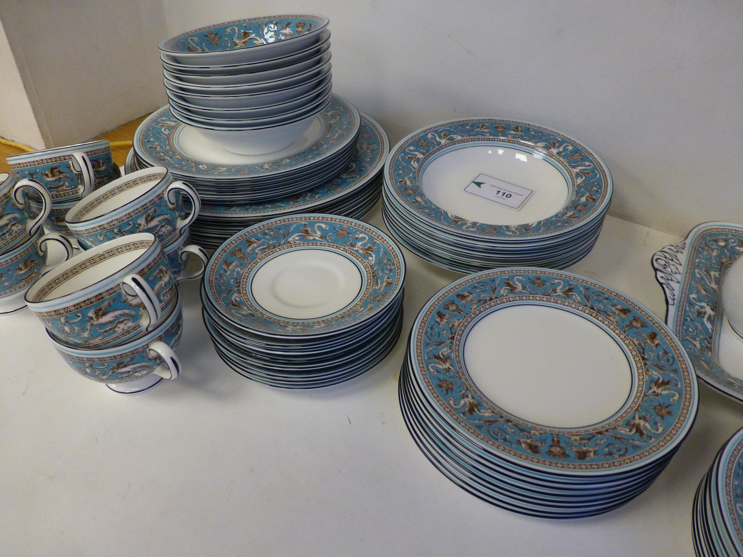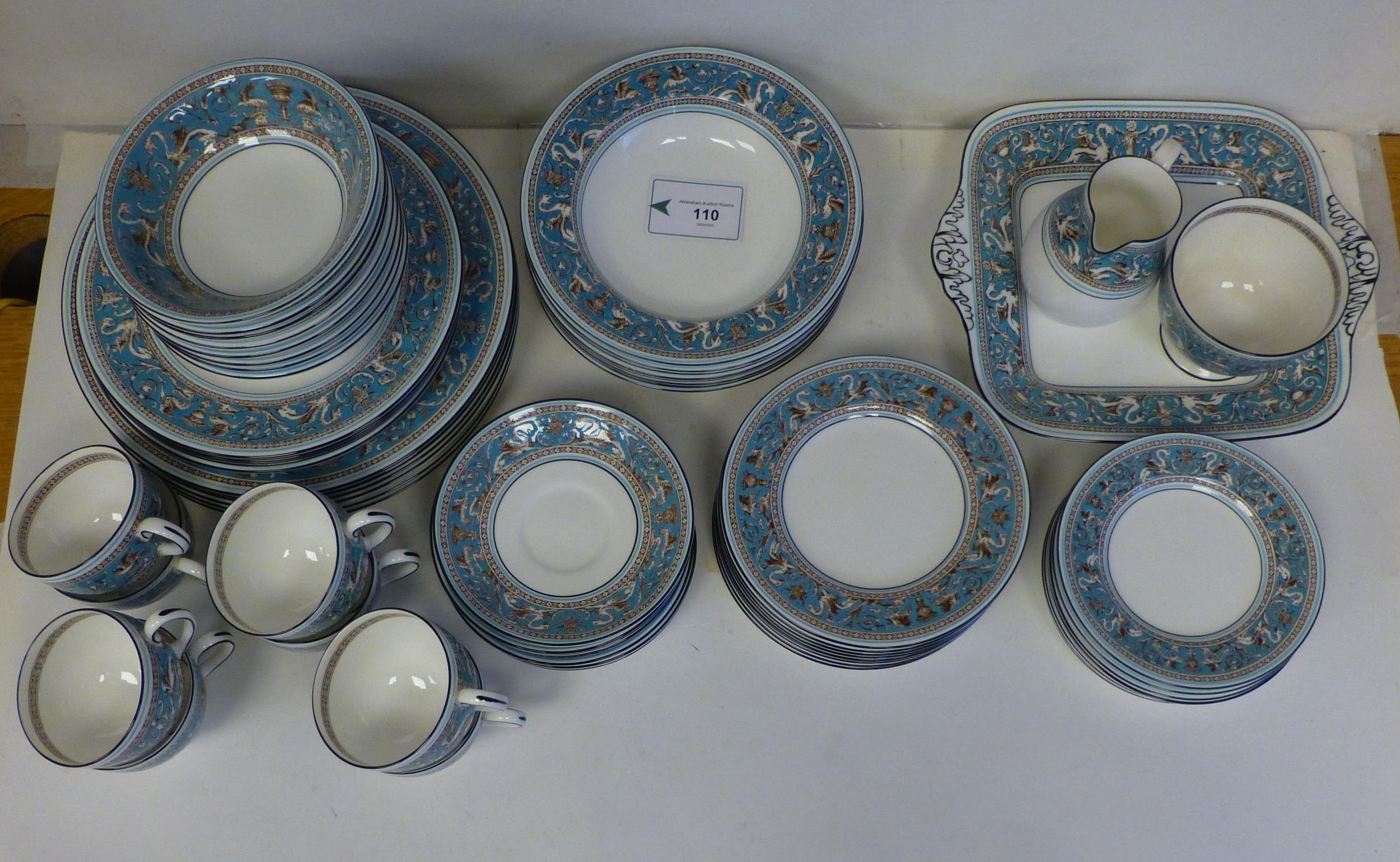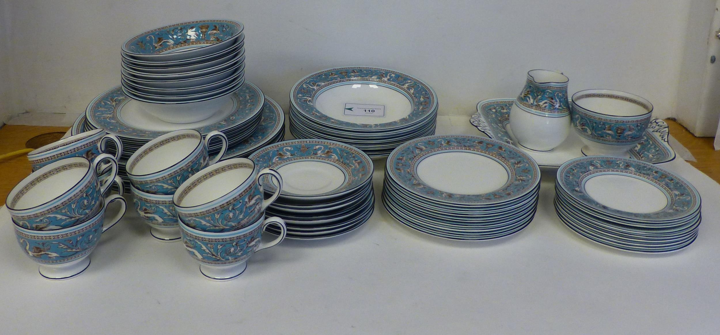 Wedgwood bone china Florentine pattern tableware, comprising a total of sixty-three items, in six and eight place settings