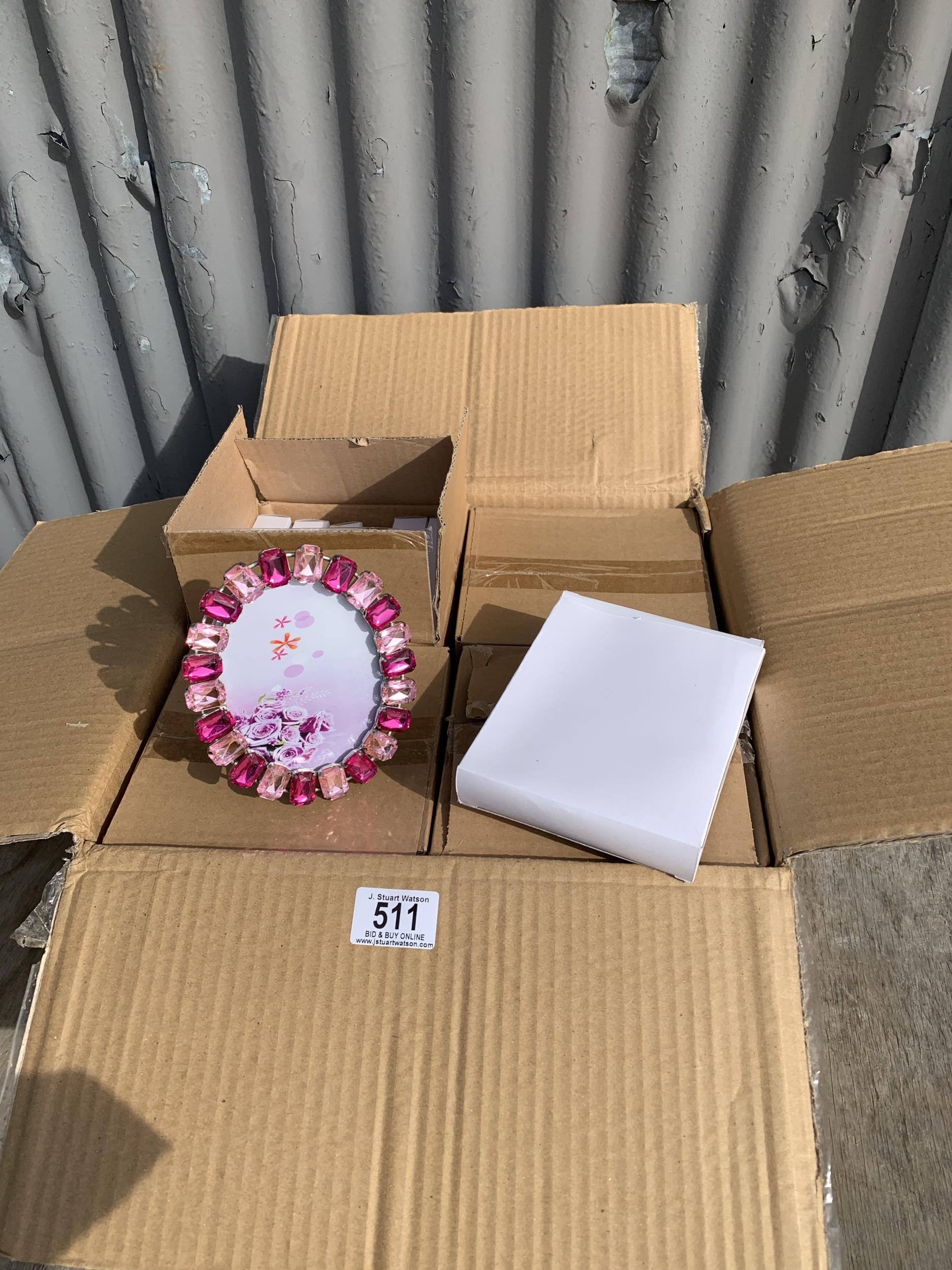 Box of 48 New boxed Pink decorative frames, approx height 13 cms
