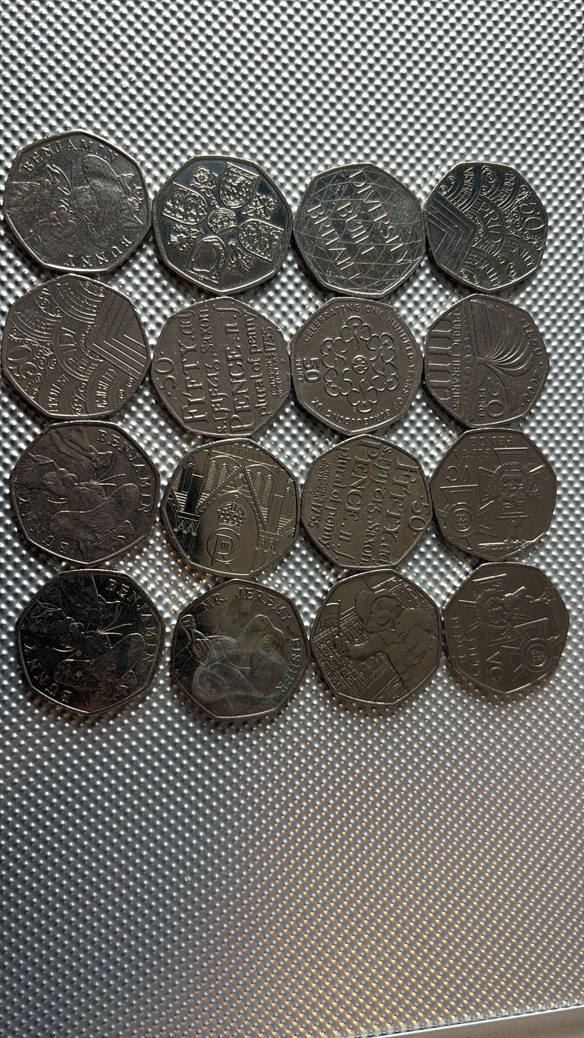 UK 50p Coin Collection – 16 Mixed Commemorative Coins (as pi...