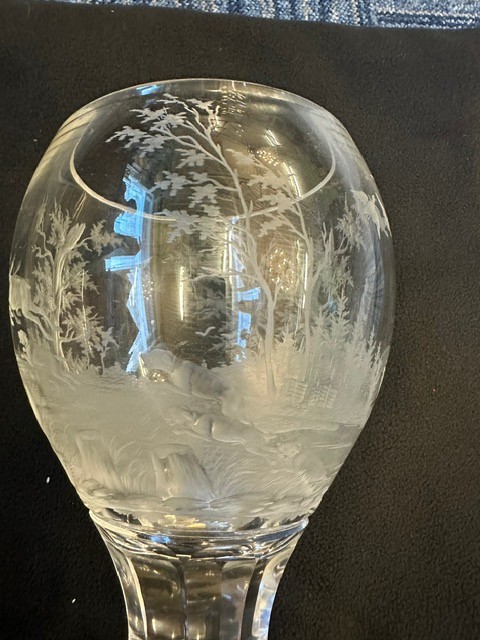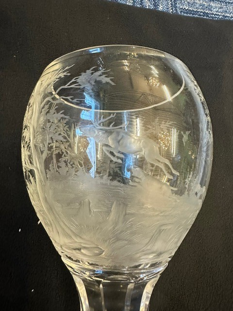 Century Hunting scene engraved rummer glass