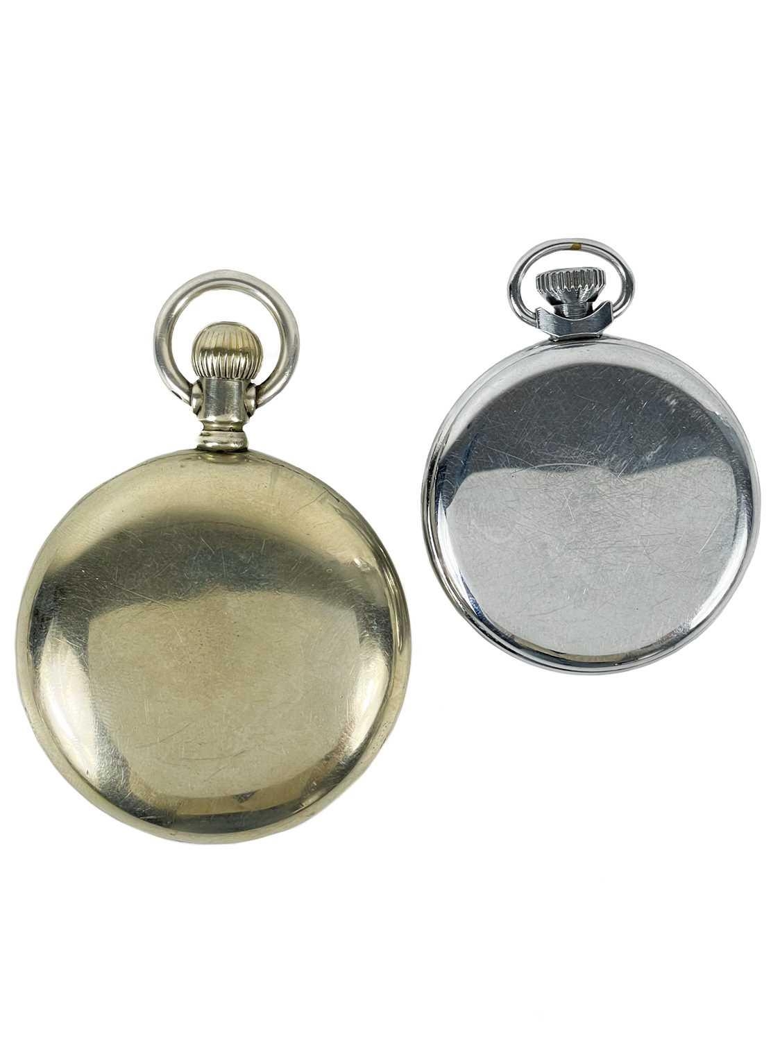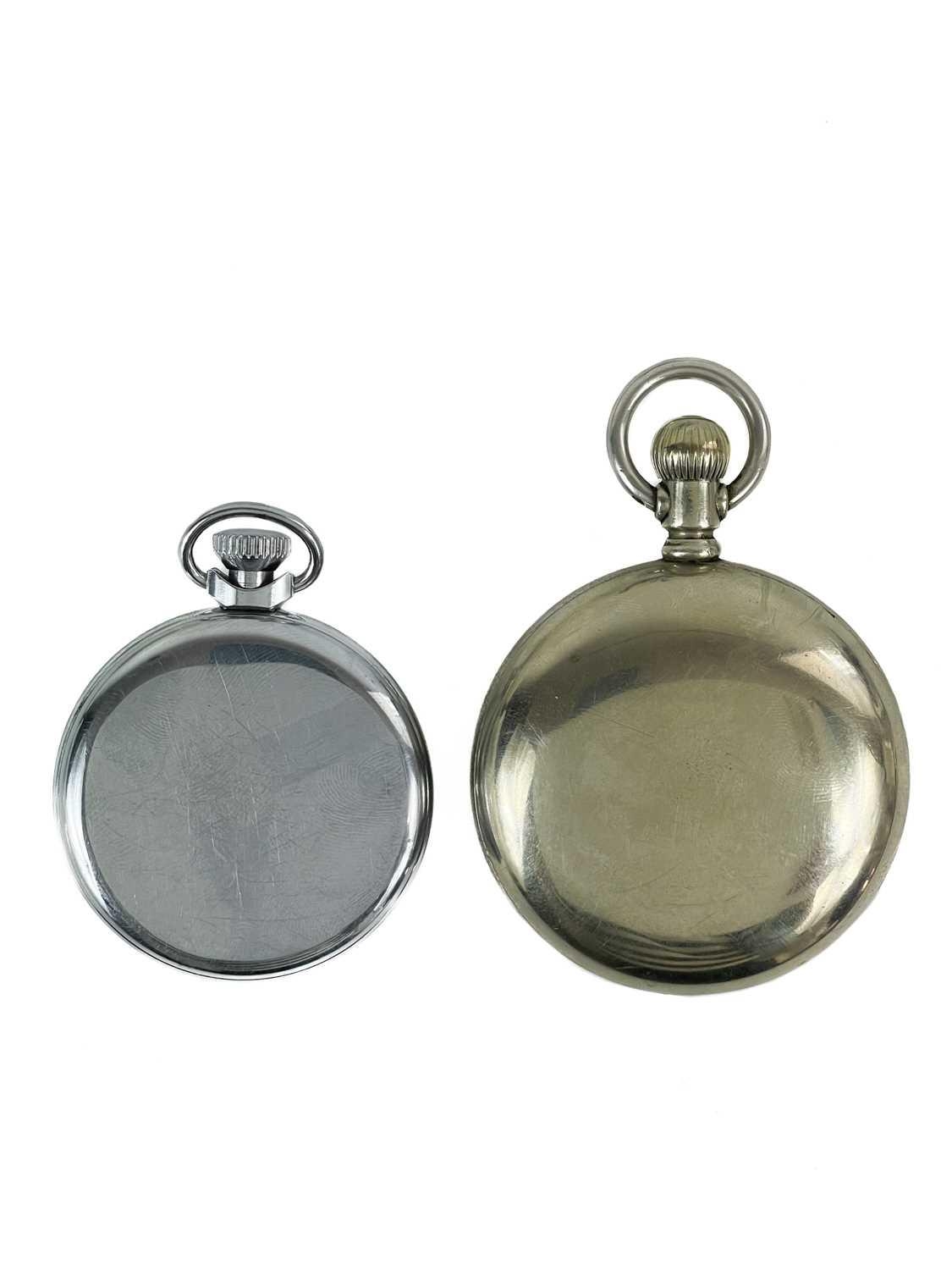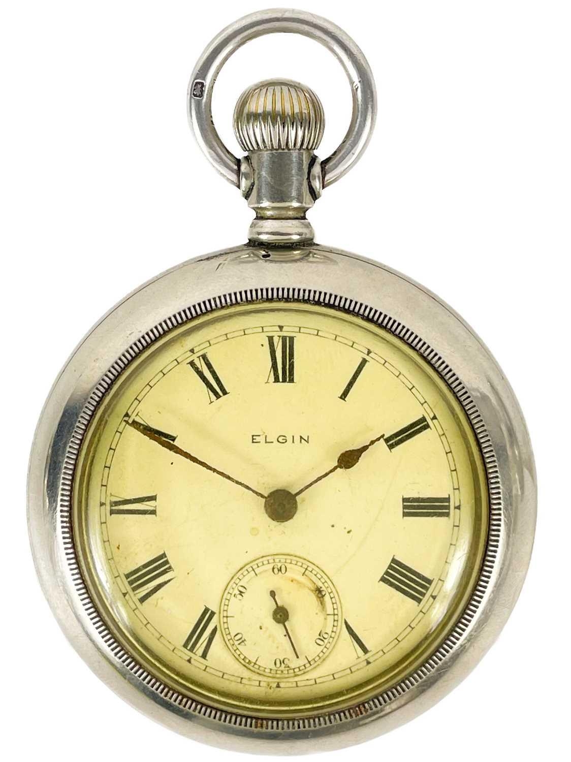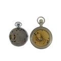 An Elgin crown wind pocket watch and a Smiths chrome cased crown wind pocket watch. The Elgin with signed 42mm dial, signed 7 jewel movement n0.11967803, keystone 'silveroid' 56mm case, not running; the Smiths pocket watch running.