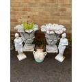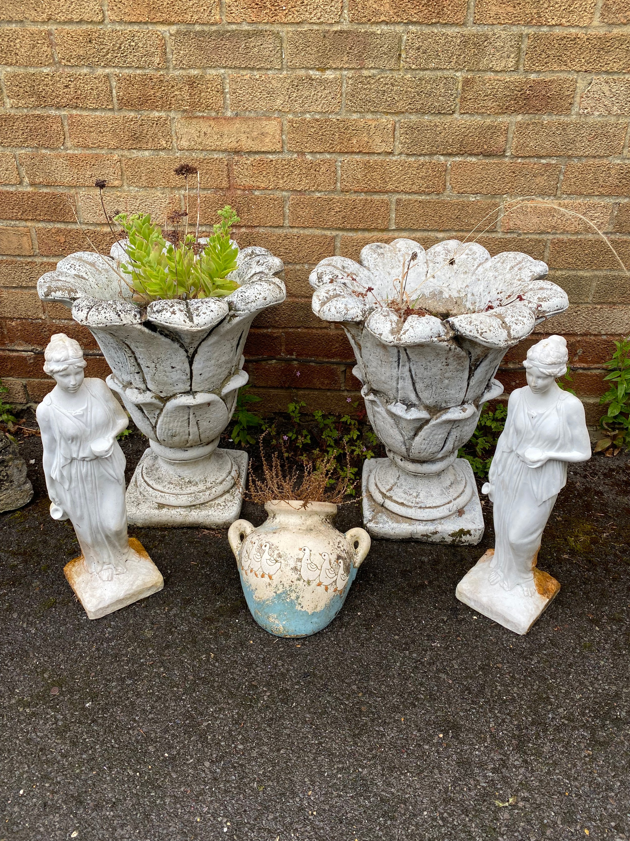 A pair of garden planters, a quantity of ornaments, including gnomes and a pair of garden troughs -