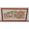 HARRY ELIOTT FOX HUNTING IN TOWN SQUARE SIGNED FRAMED WATERCOLOUR & INK 31 X 65 CM