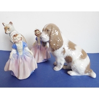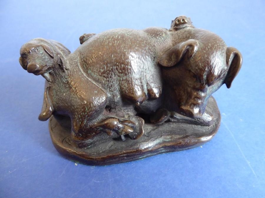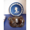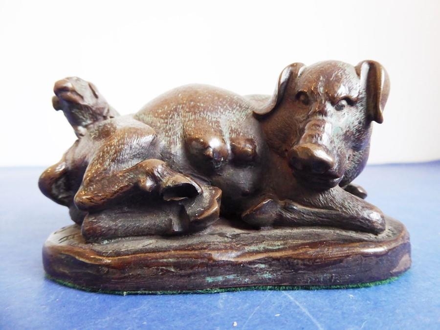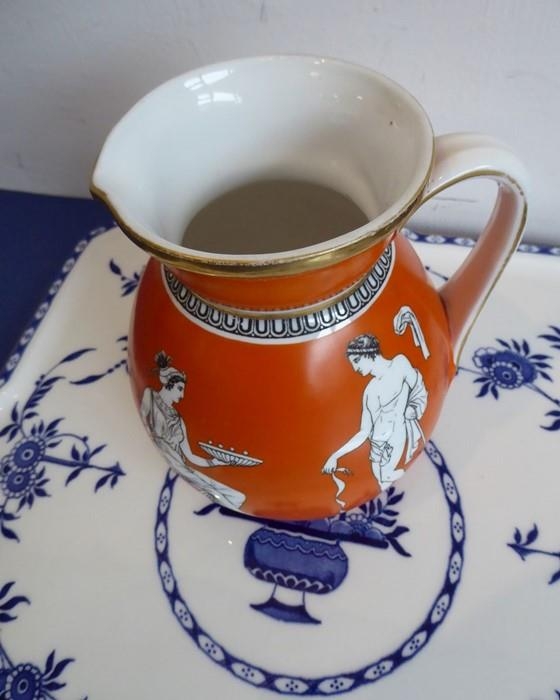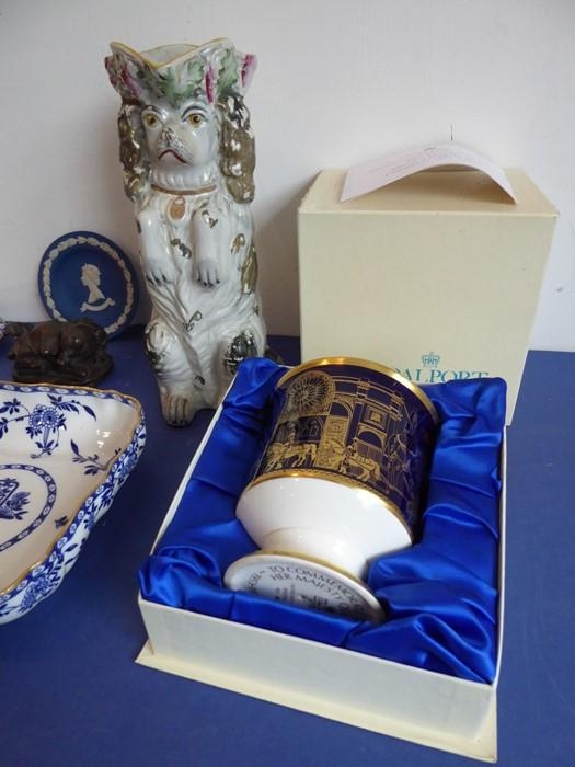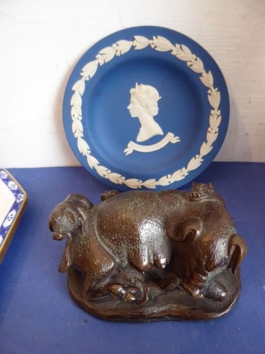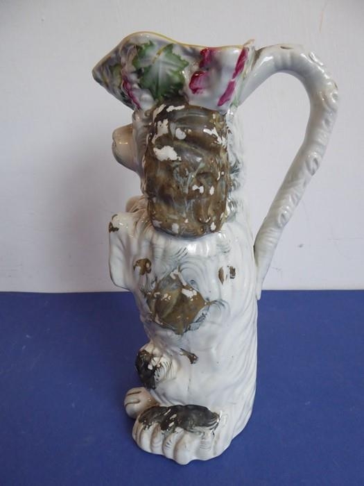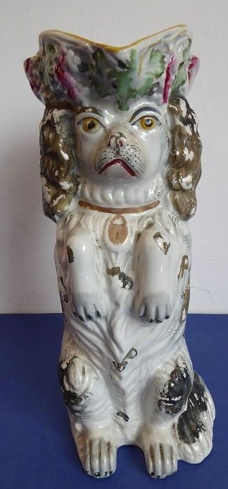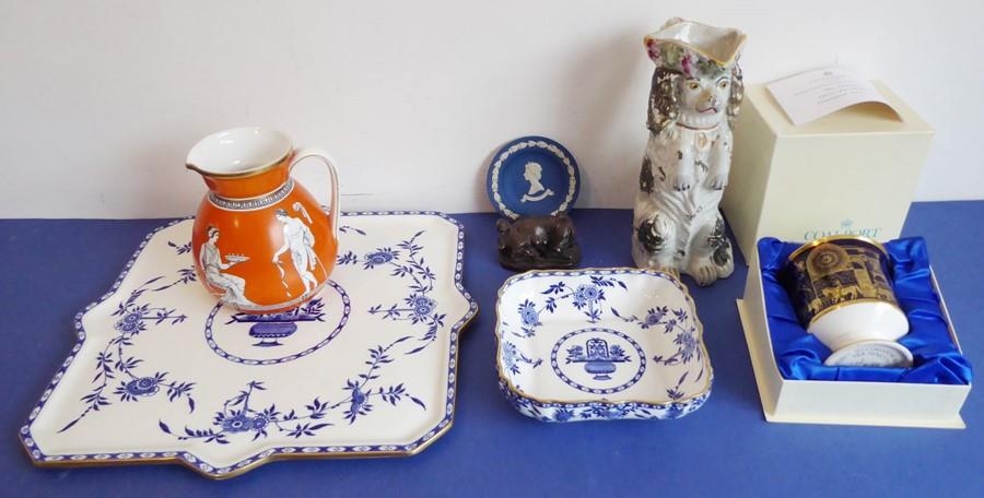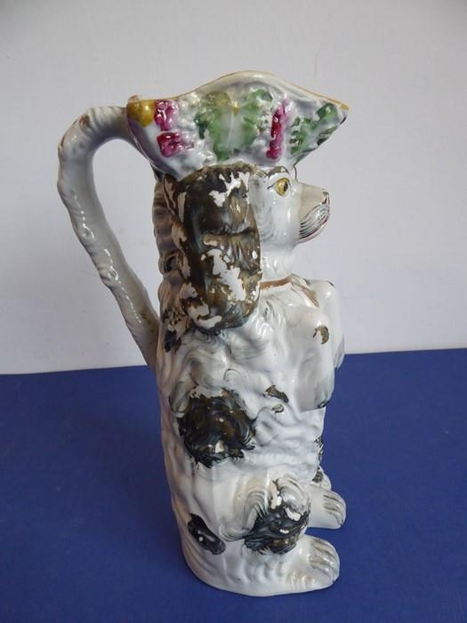 A selection of ceramics to include an unusual 19th century Staffordshire Potteries jug modelled as a begging dog with tricorn hat (26cm high) and two matching pieces of 20th century Minton Delftware, together with a model of a sow with piglets (7)