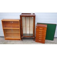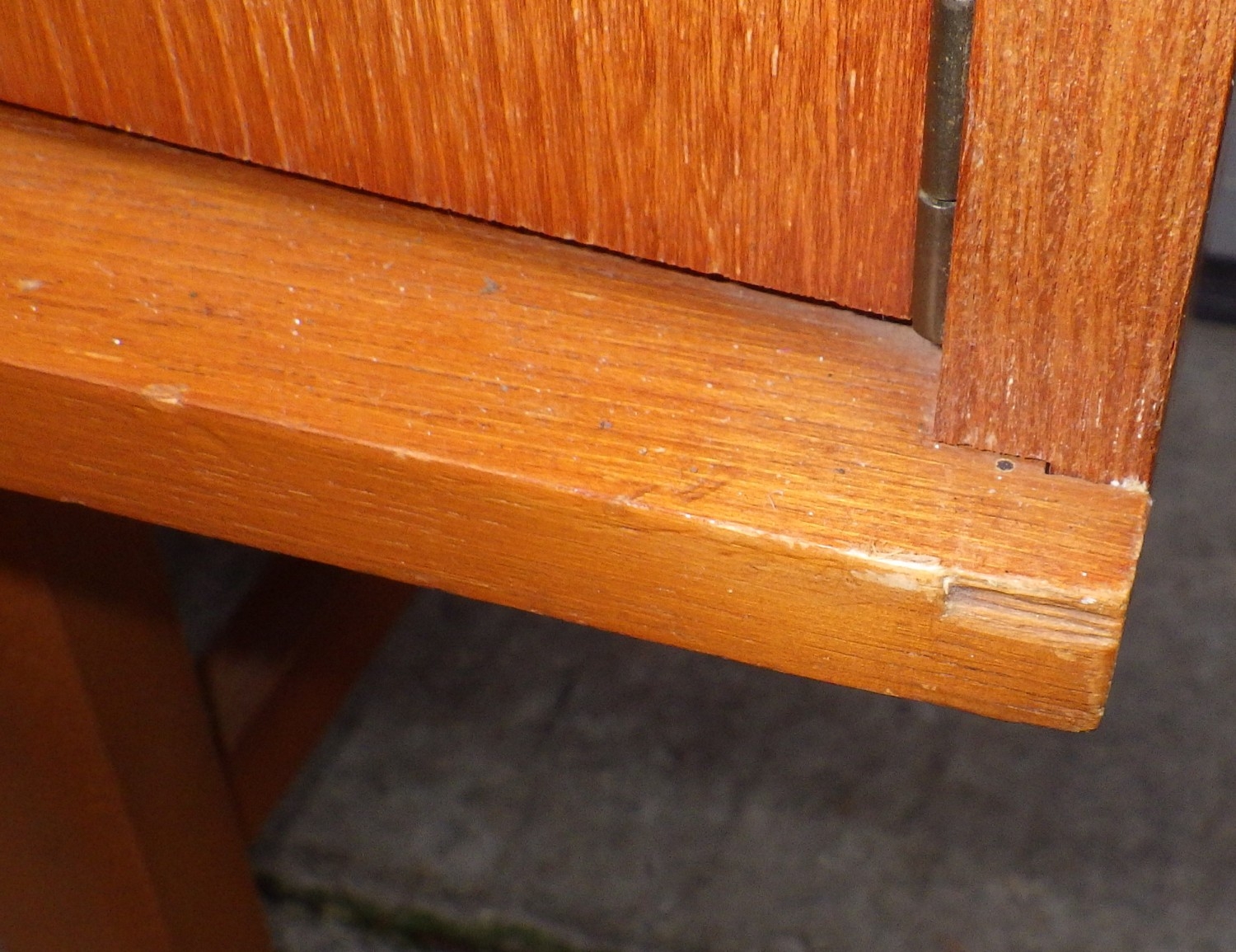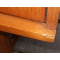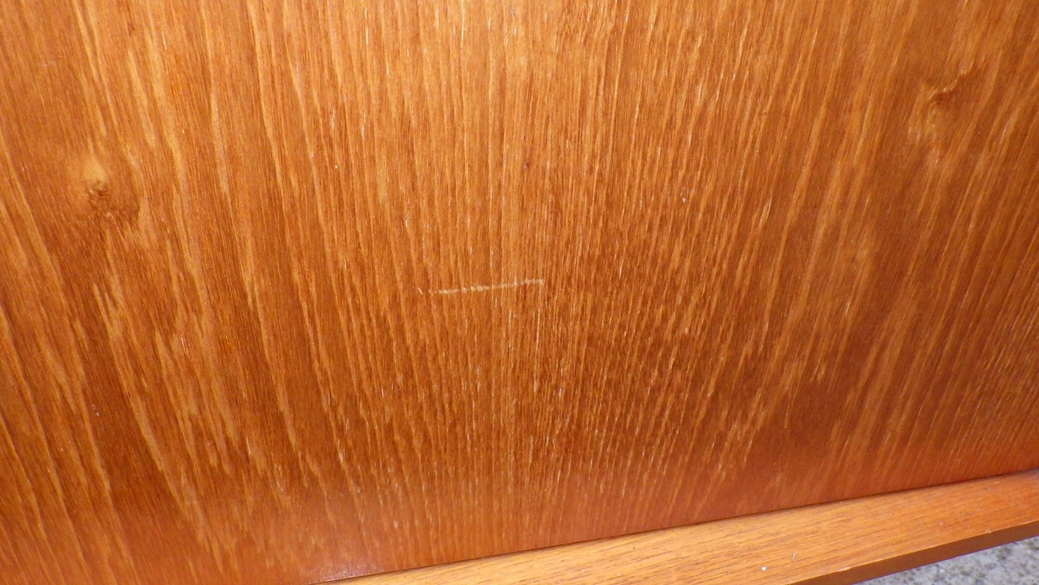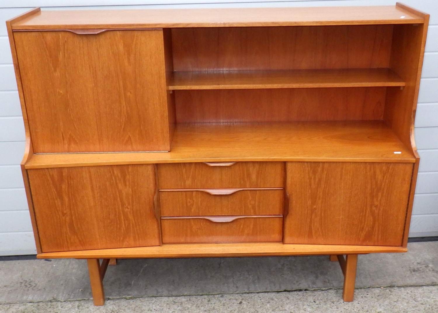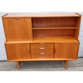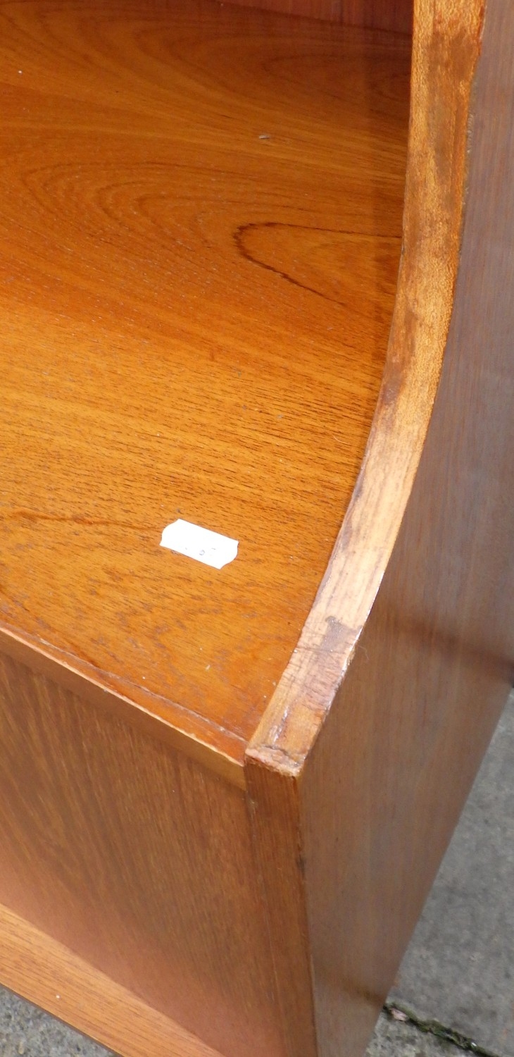 A teak highbooard, some damage to corner, small crack, 151cm wide