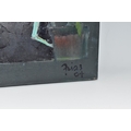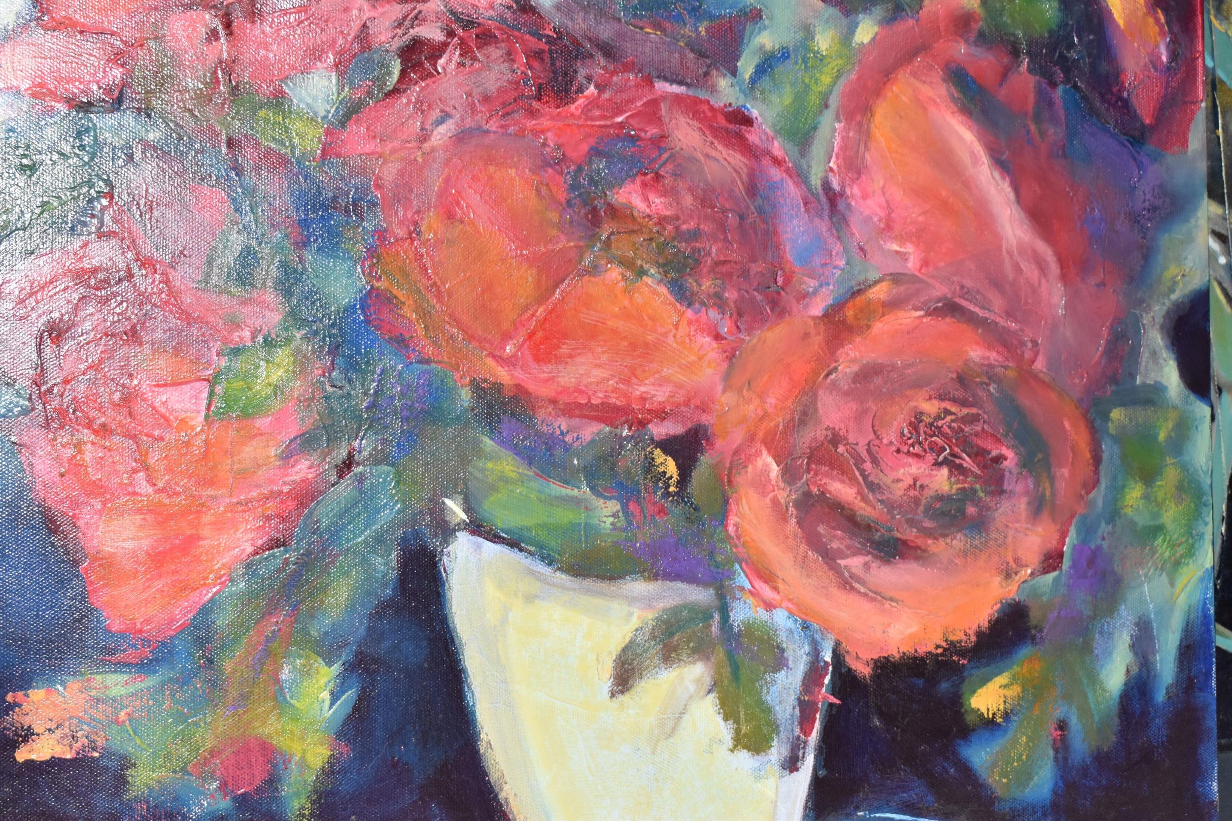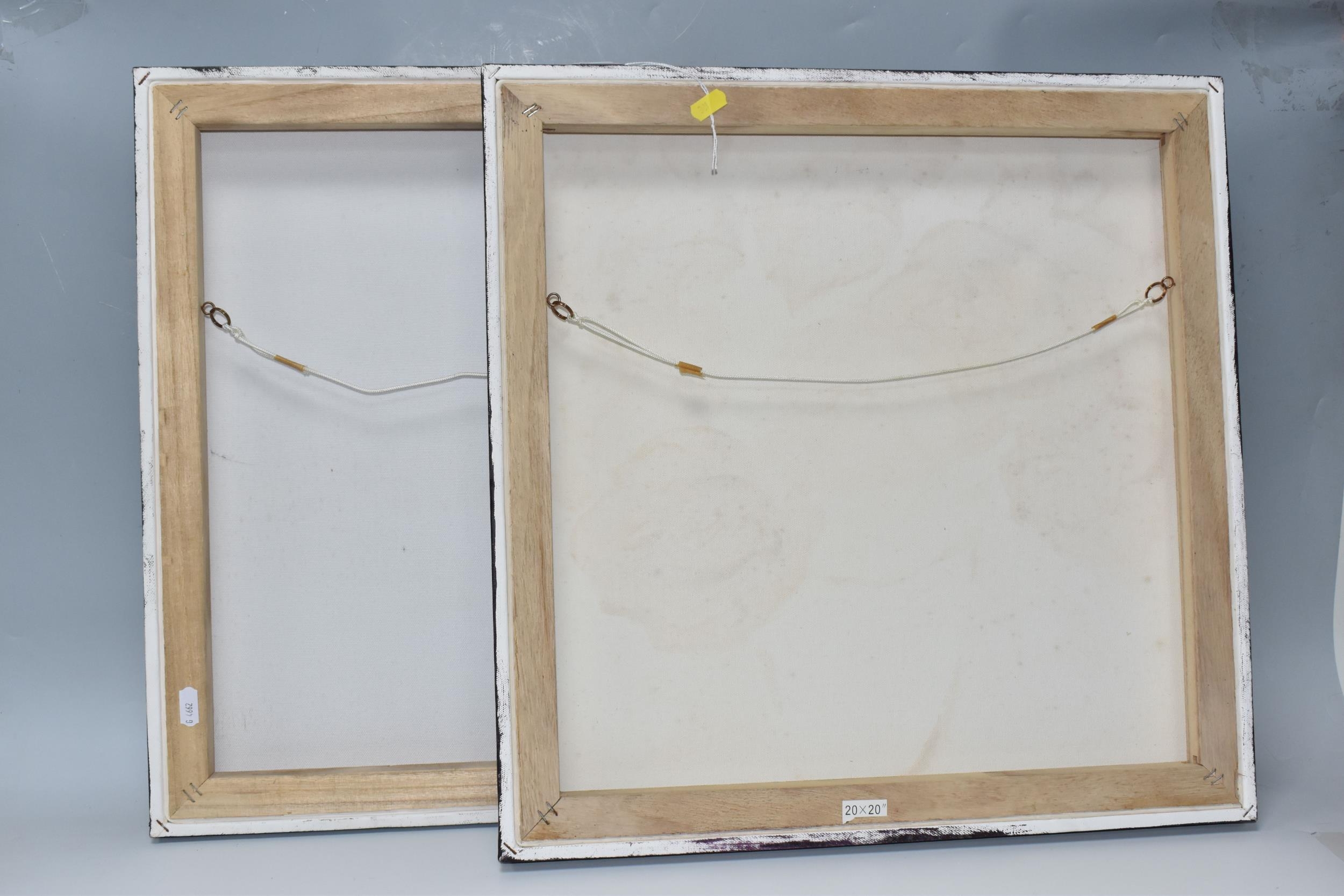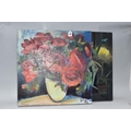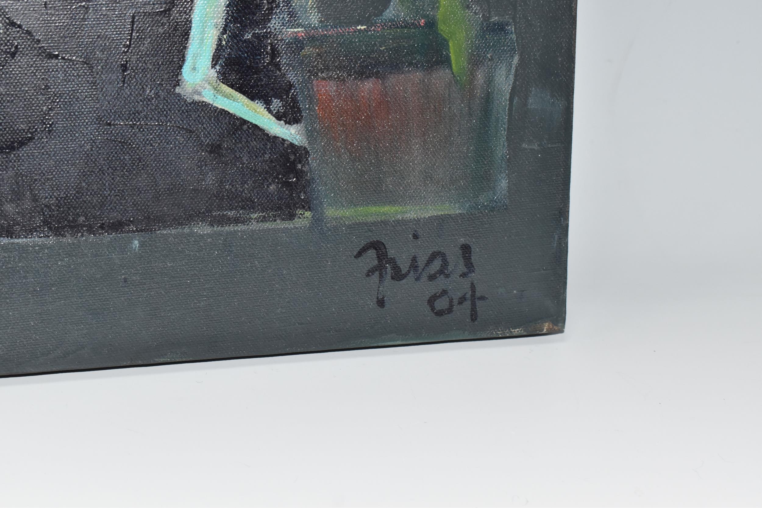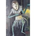 PAUL MARTINEZ-FRIAS (BRITISH 1929-) A STILL LIFE STUDY OF FLOWERS IN A VASE, signed and dated (20)05 bottom right, oil on box canvas, approximate size 51cm x 51cm, together with a study of an African puppet by the same hand, signed and dated (20)04 bottom right, oil on box canvas, approximate size 51cm x 41cm, Condition Report: puppet picture has a spot of paint loss to the right edge, both have dirty marks to the sides (artist resale rights apply)