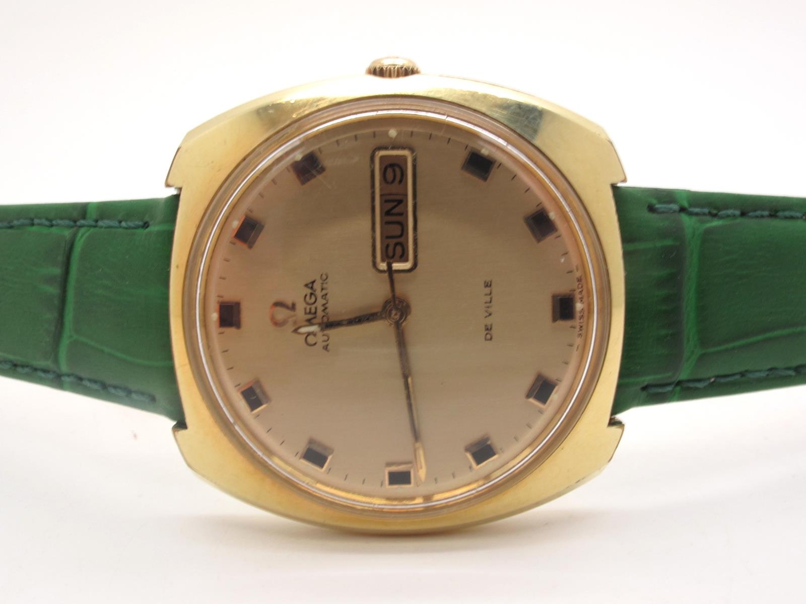 Omega; A Vintage Gold Plated Cased De Ville Automatic Gent's Wristwatch, the signed dial with block markers, centre seconds and day/date aperture, (movement unseen) the case back stamped "TOOL 106" "Gold Electroplate", on a modern strap.