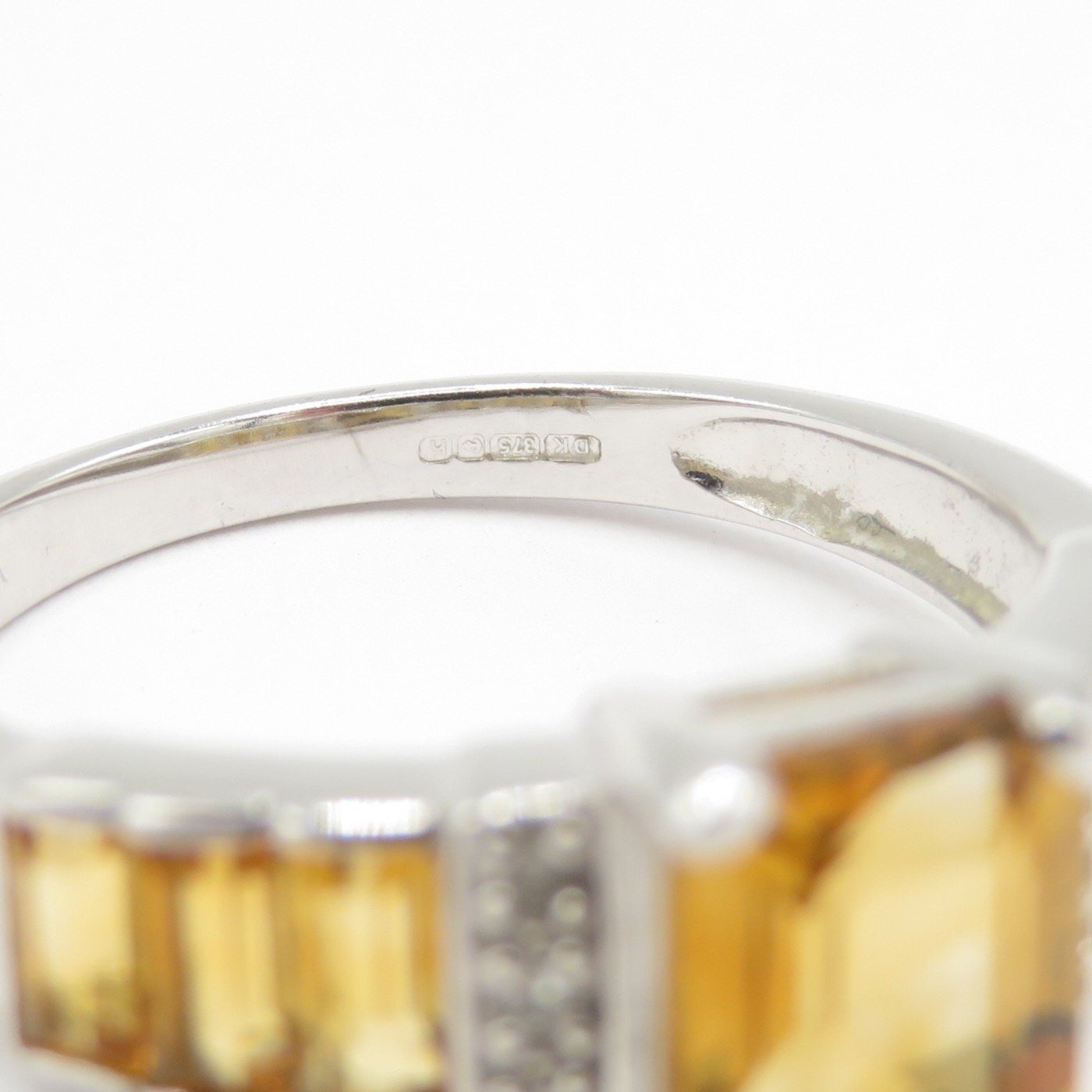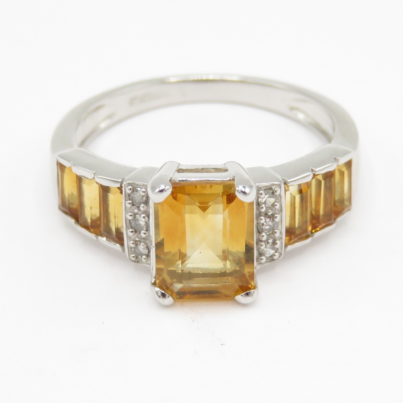 9ct white gold diamond and orange gemstone cocktail ring (2.9g) Size N