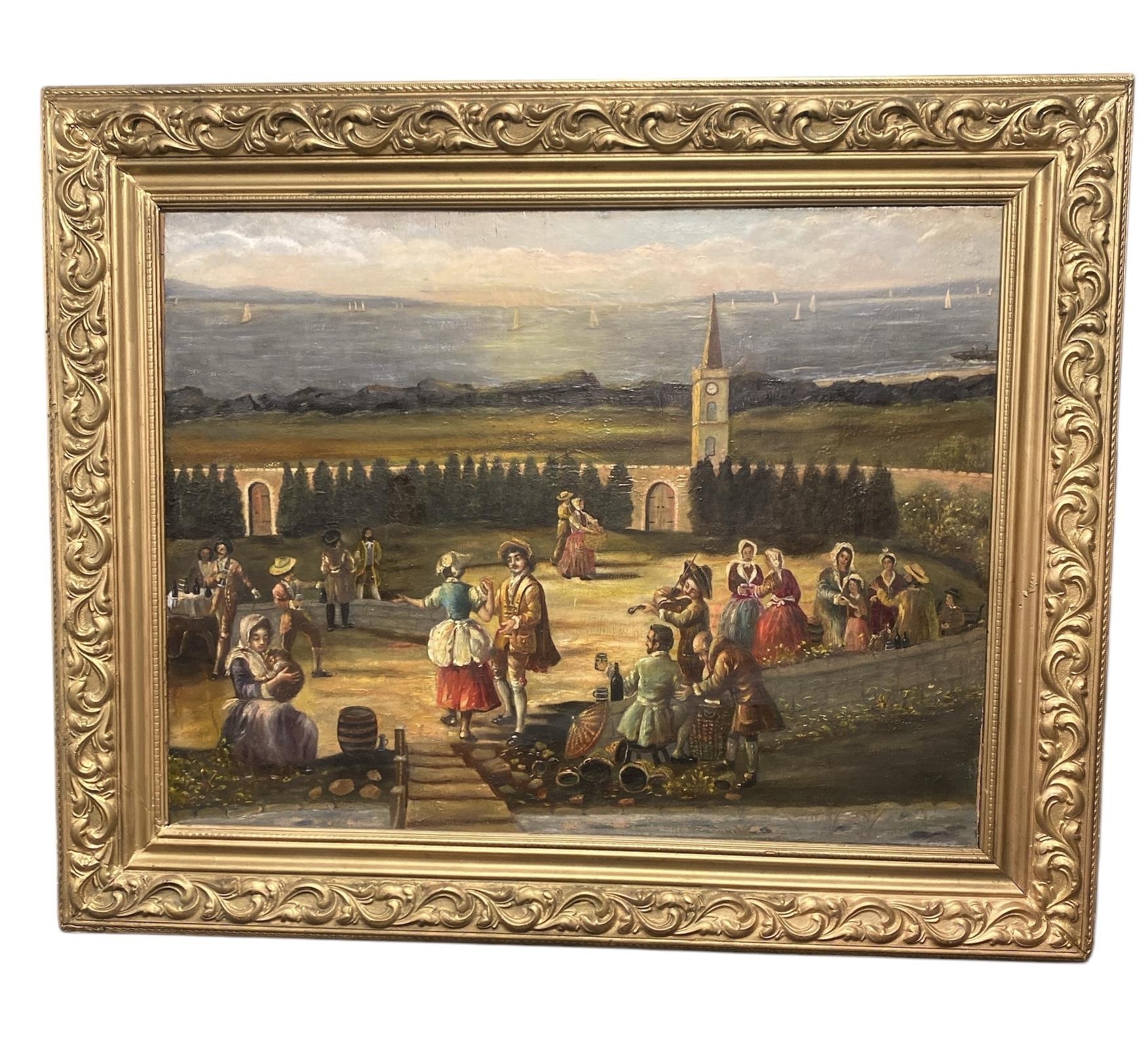 Impressive Dutch Oil on Board ( Garden Party)Including Frame 99cm x 80cm
