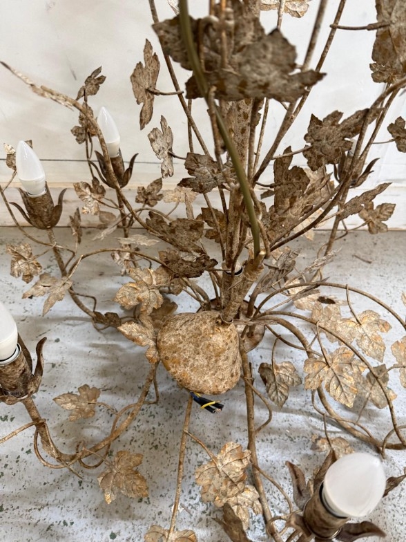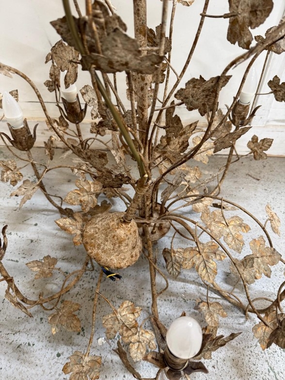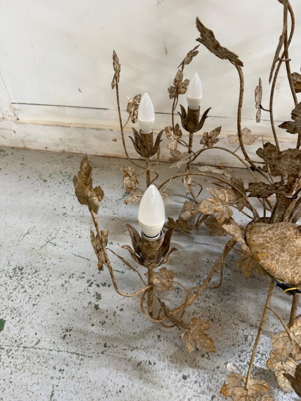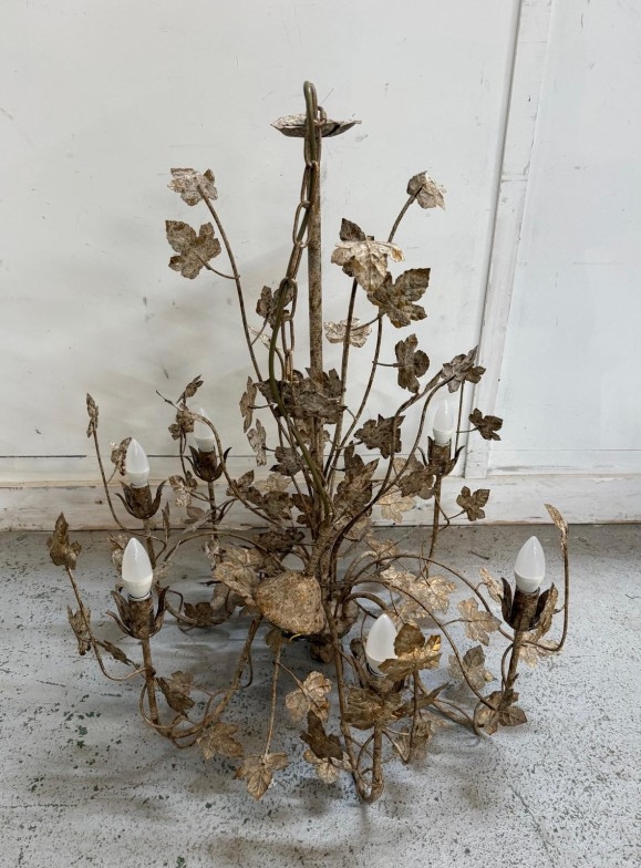 A six arm decorative chandelier with a leaf theme. AF Height 84cm
