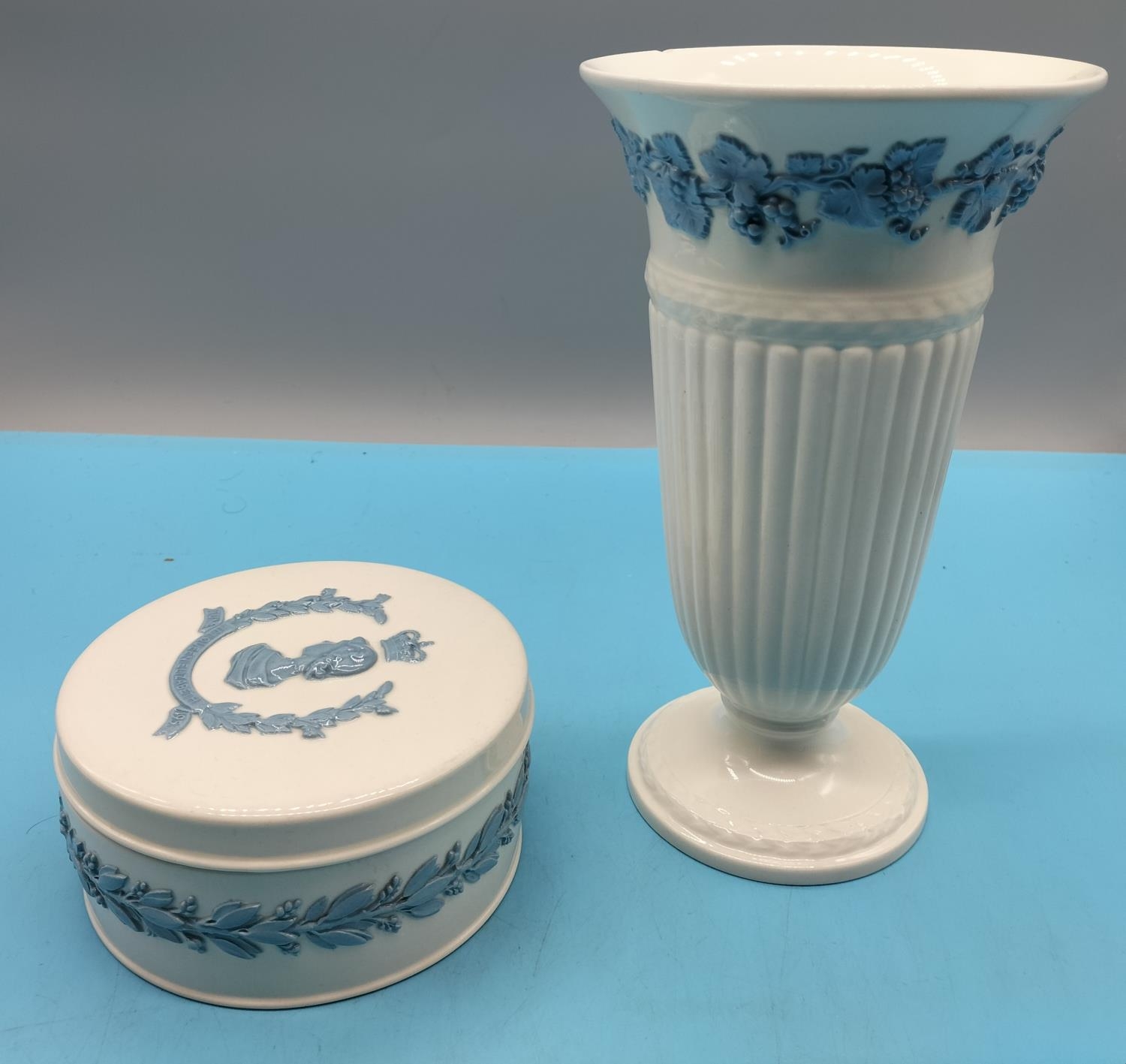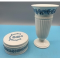 Wedgwood Queensware Trinket Box plus 22cm Vase. Nip to Rim.