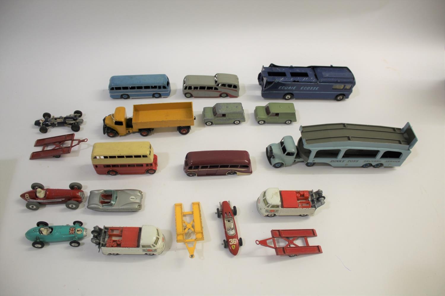 DINKY & CORGI TOYS a selection of Dinky and Corgi commercial and other diecast models, includes Corgi Gift Set 16 part set comprising Ecurie Ecosse Racing Car Transporter, 151A Lotus Mk Eleven Le Mans in pewter grey, and 152S BRM F1 in turquoise.