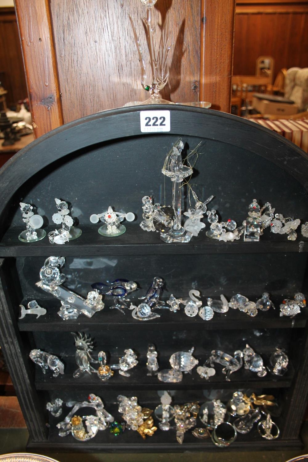 Large collection of Swarovski, and other glass animal models, on stand.