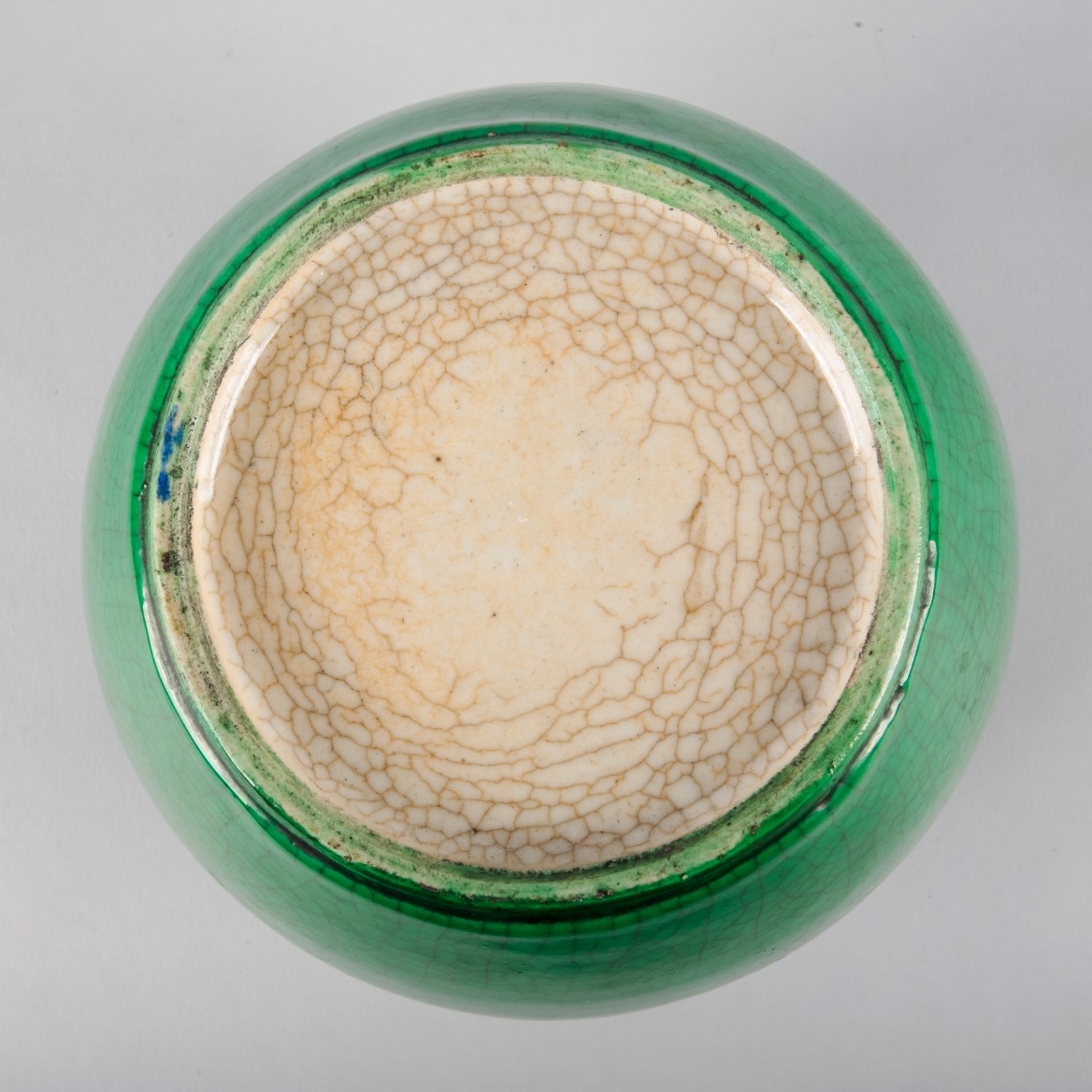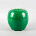A CHINESE PORCELAIN APPLE GREEN CRACKLE GLAZED JAR19th/20th century, of bulbous form with raised rim and tapered foot, 21cm high x 19cm diameterProvenance: The Peter Newall Collection.