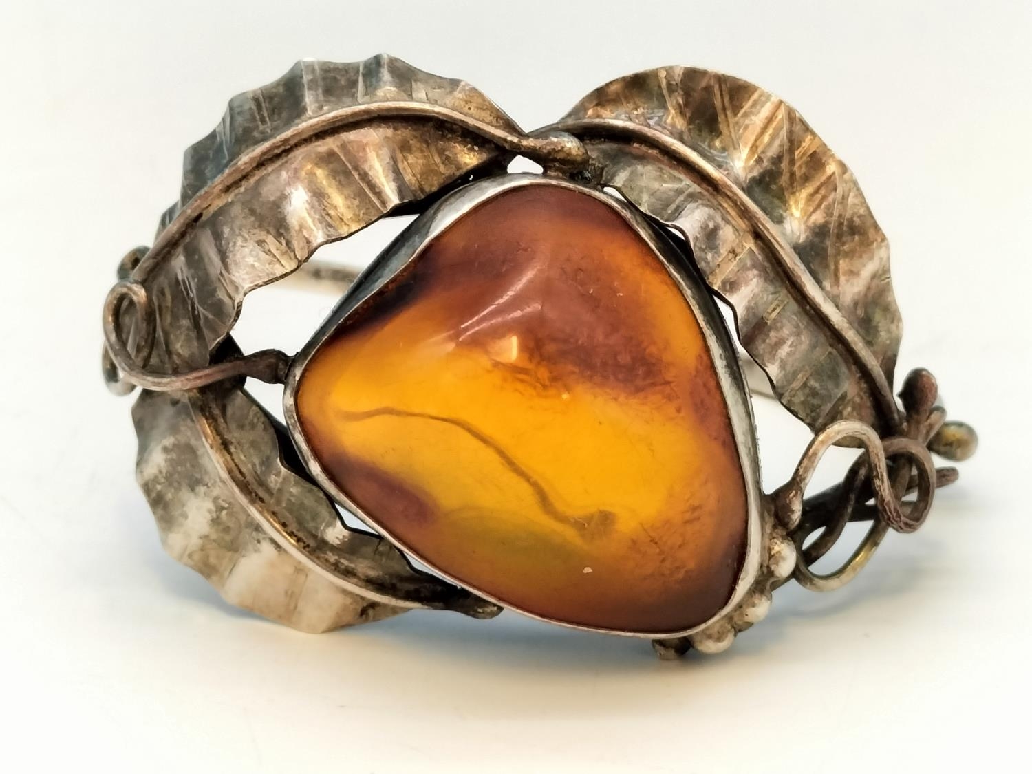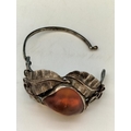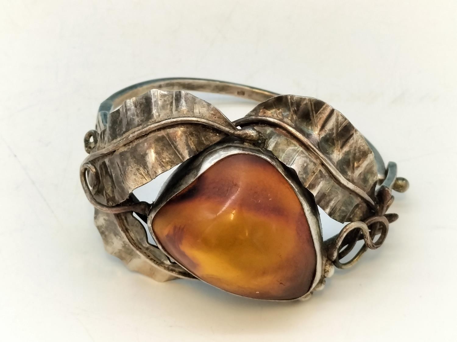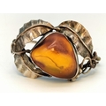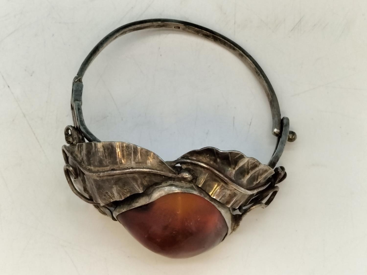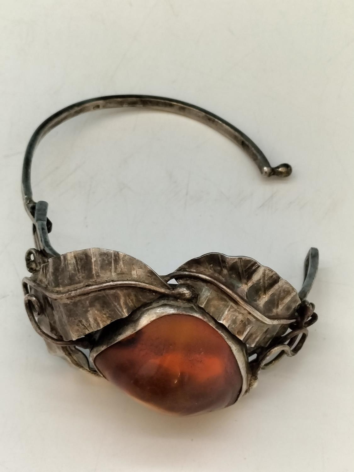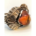 .900 Silver Bangle with Large Natural Amber Centre Stone.