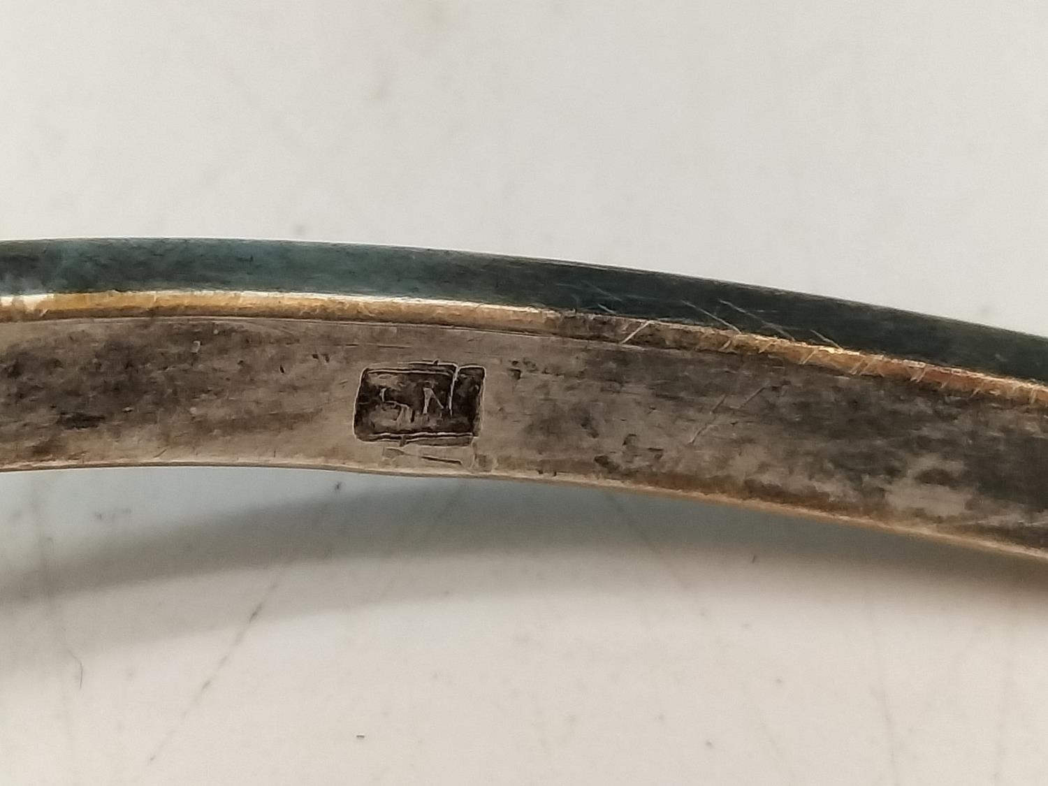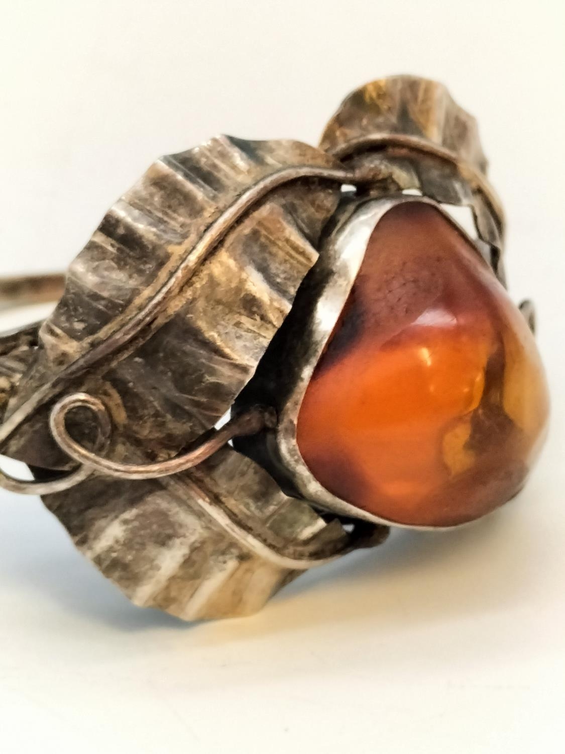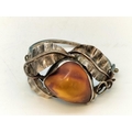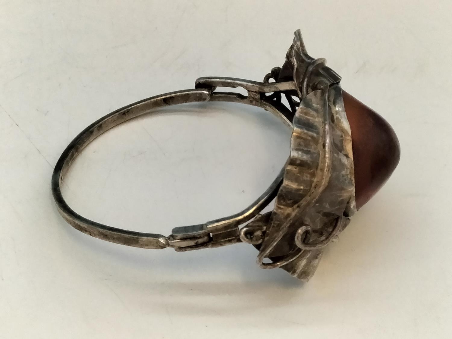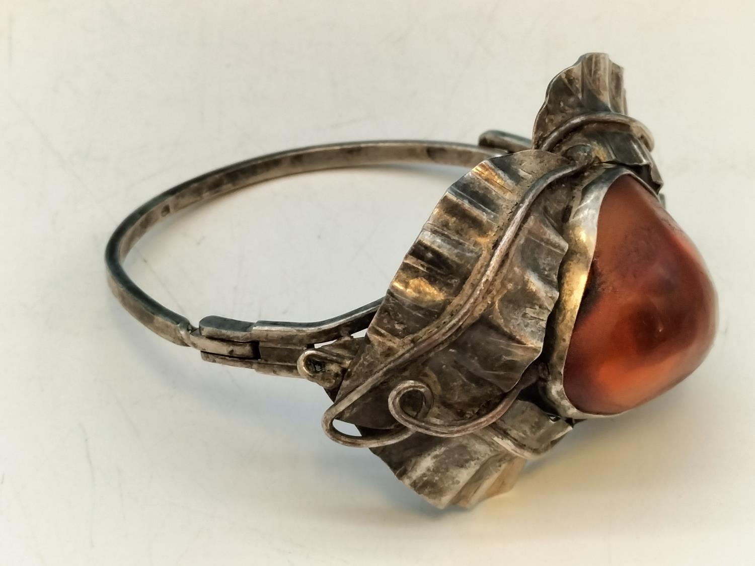 .900 Silver Bangle with Large Natural Amber Centre Stone.