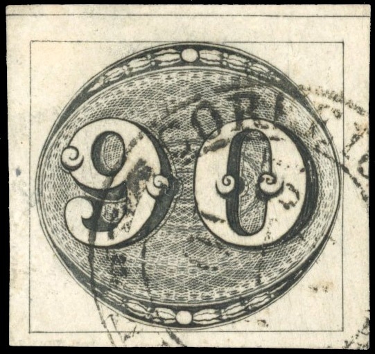 Bull's Eye: 1843 Intermediate Impression 90r good to large margins with full dividing line visible at top, fine and fresh used.