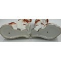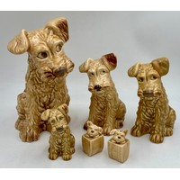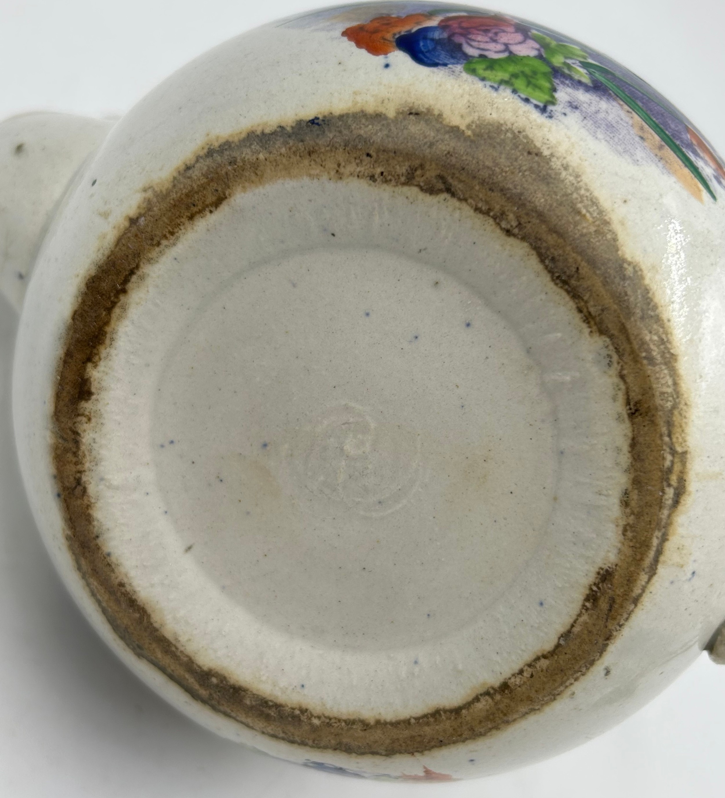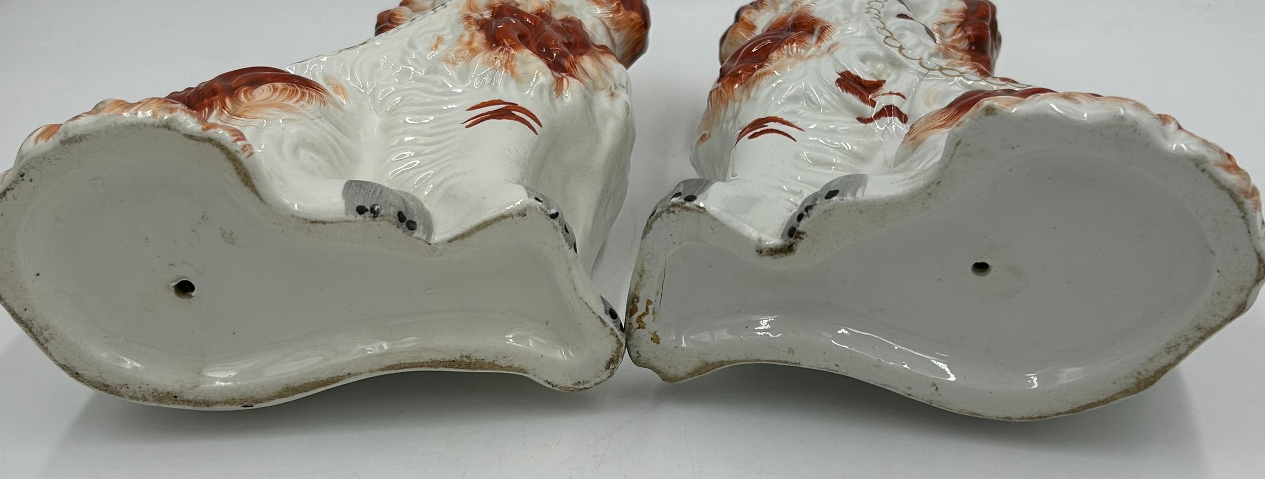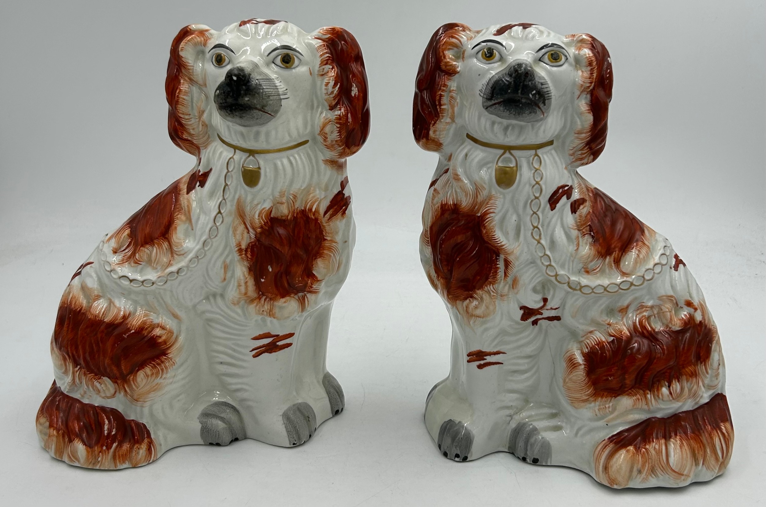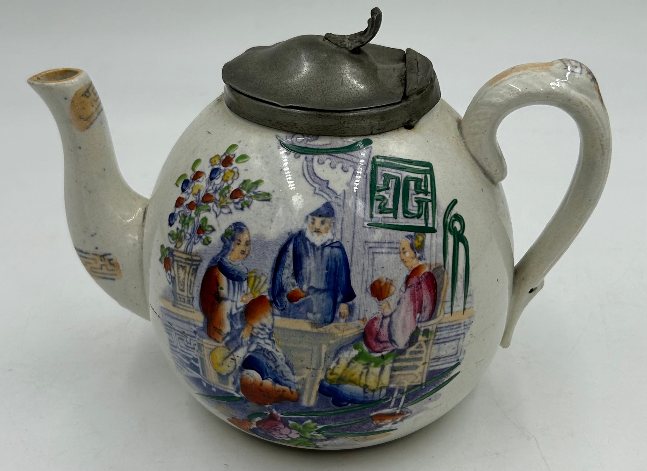 A collection of 19thC English ceramics to include a large Measham bargeware teapot decorated with flowers and birds, in relief 'A present to Henry Watson from Church Gresley 1899', together with a pair of brown and white Staffordshire Spaniels, a lidded jam pot by G. Jones & Sons, etc. (6).