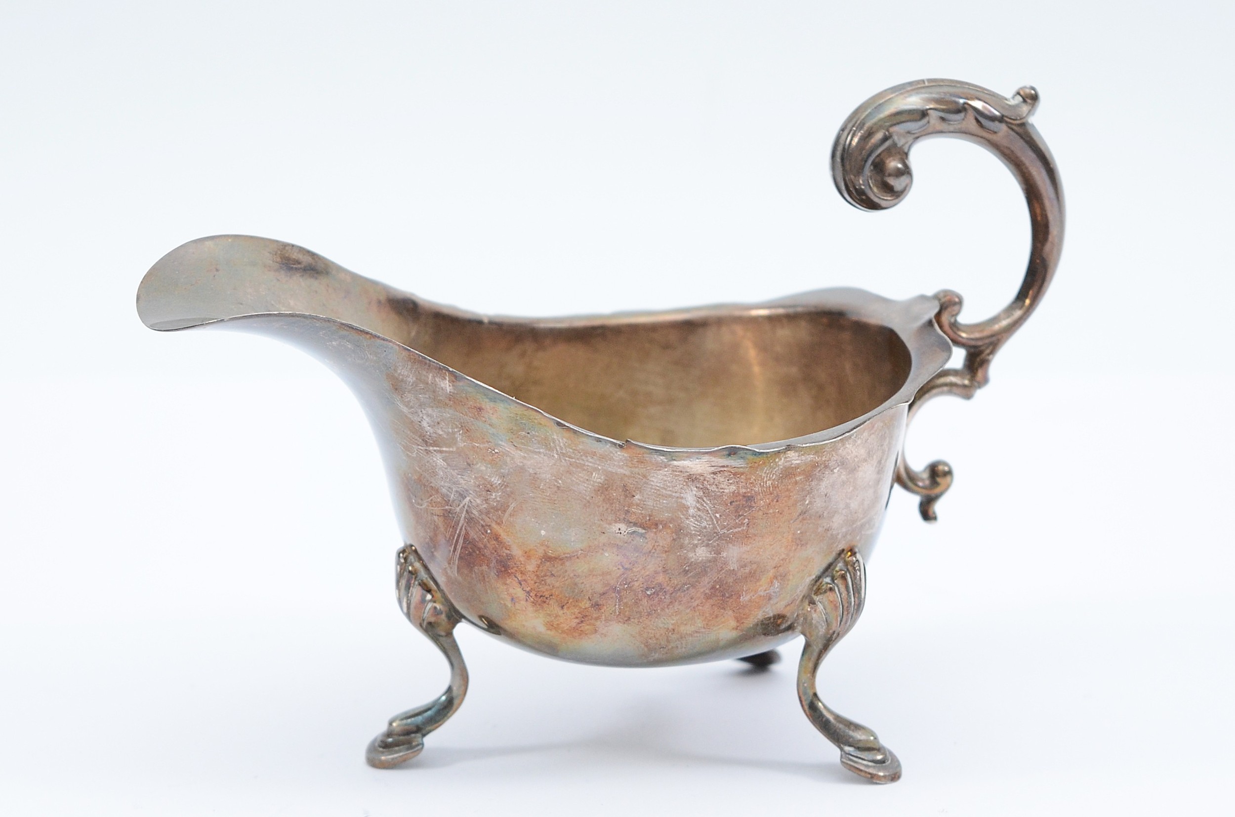 A silver milk jug, Birmingham 1941, by S Blanckensee & Son Ltd, raised on three legs, 141gm, 14x8cm.