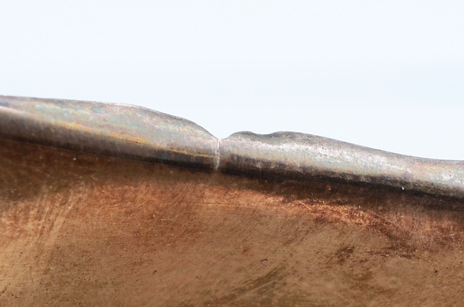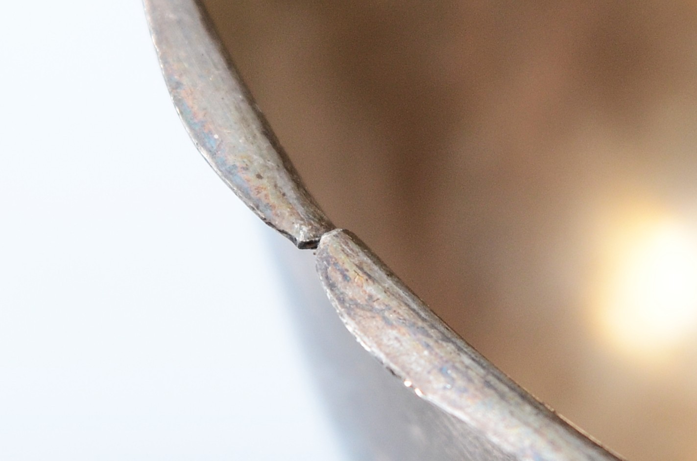 condition - having a small split to the edge of the silver on both sides, has a dint to the side.