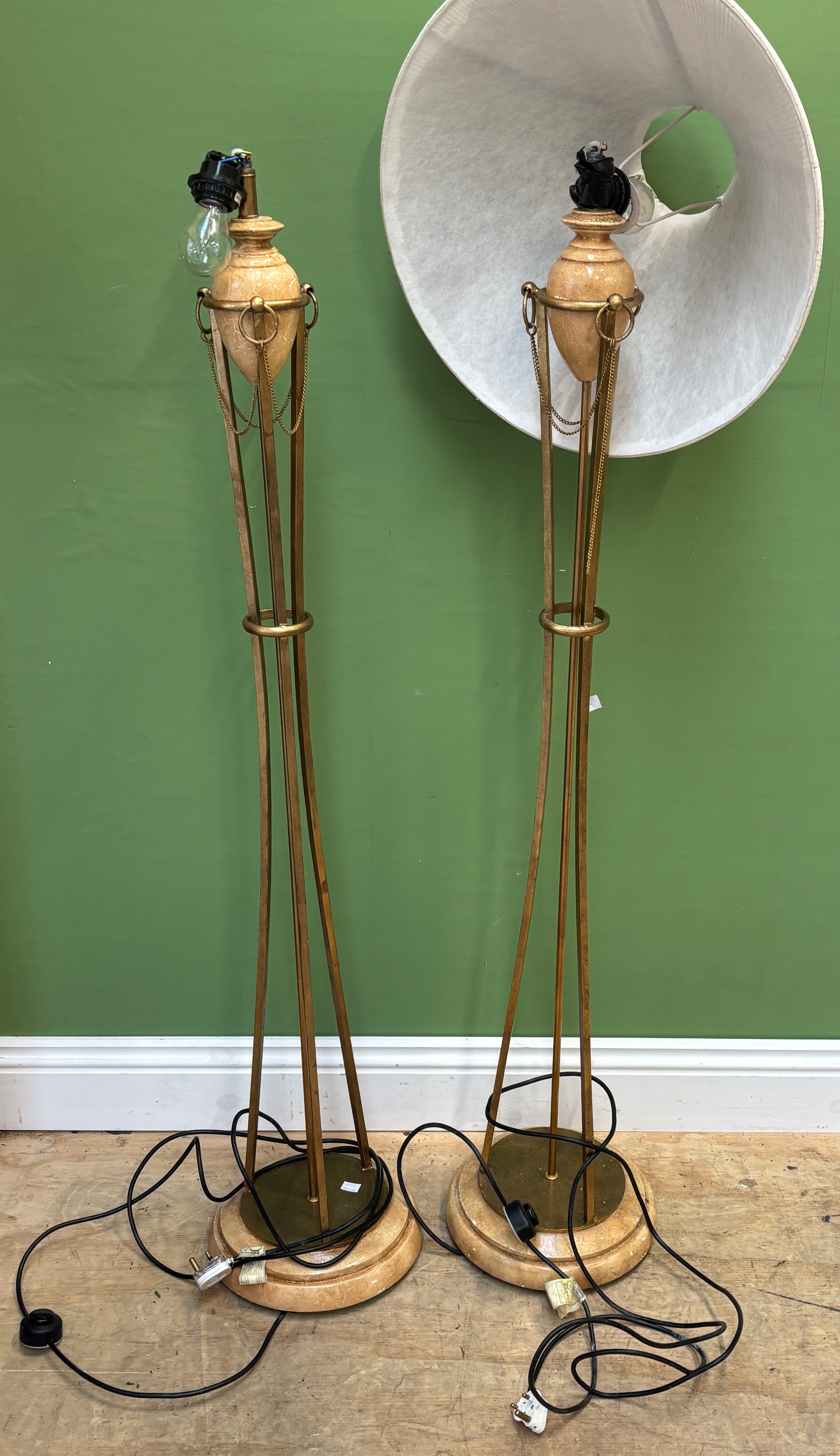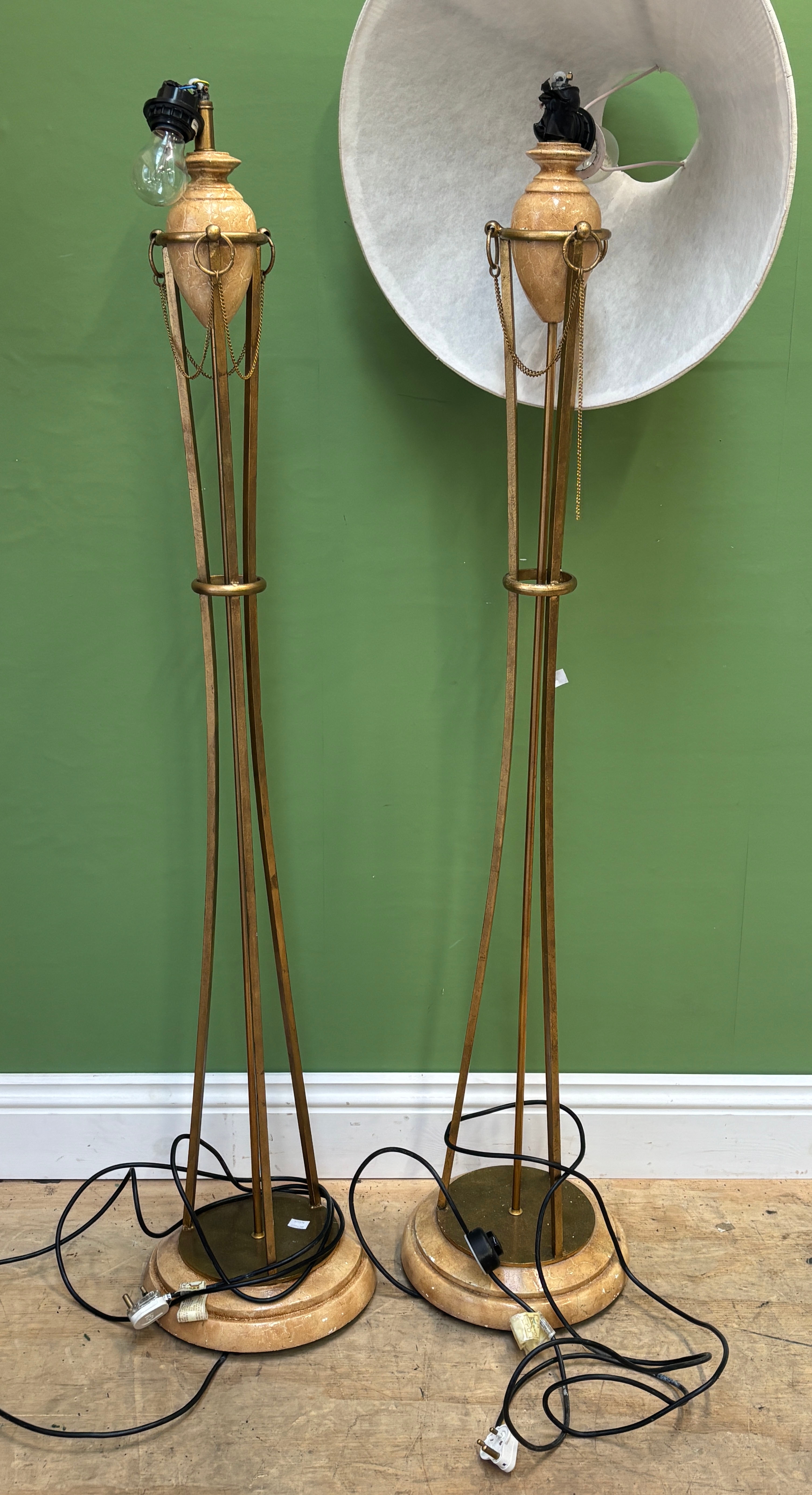 A pair of gilt metal and simulated marble floor standing lamps, 126cmH