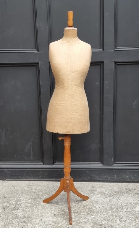 A vintage tailors dummy, inscribed to base 'W-S', on beech tripod stand, 160cm high.