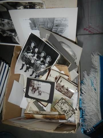 A box of assorted ephemera, black & white photo's etc.,