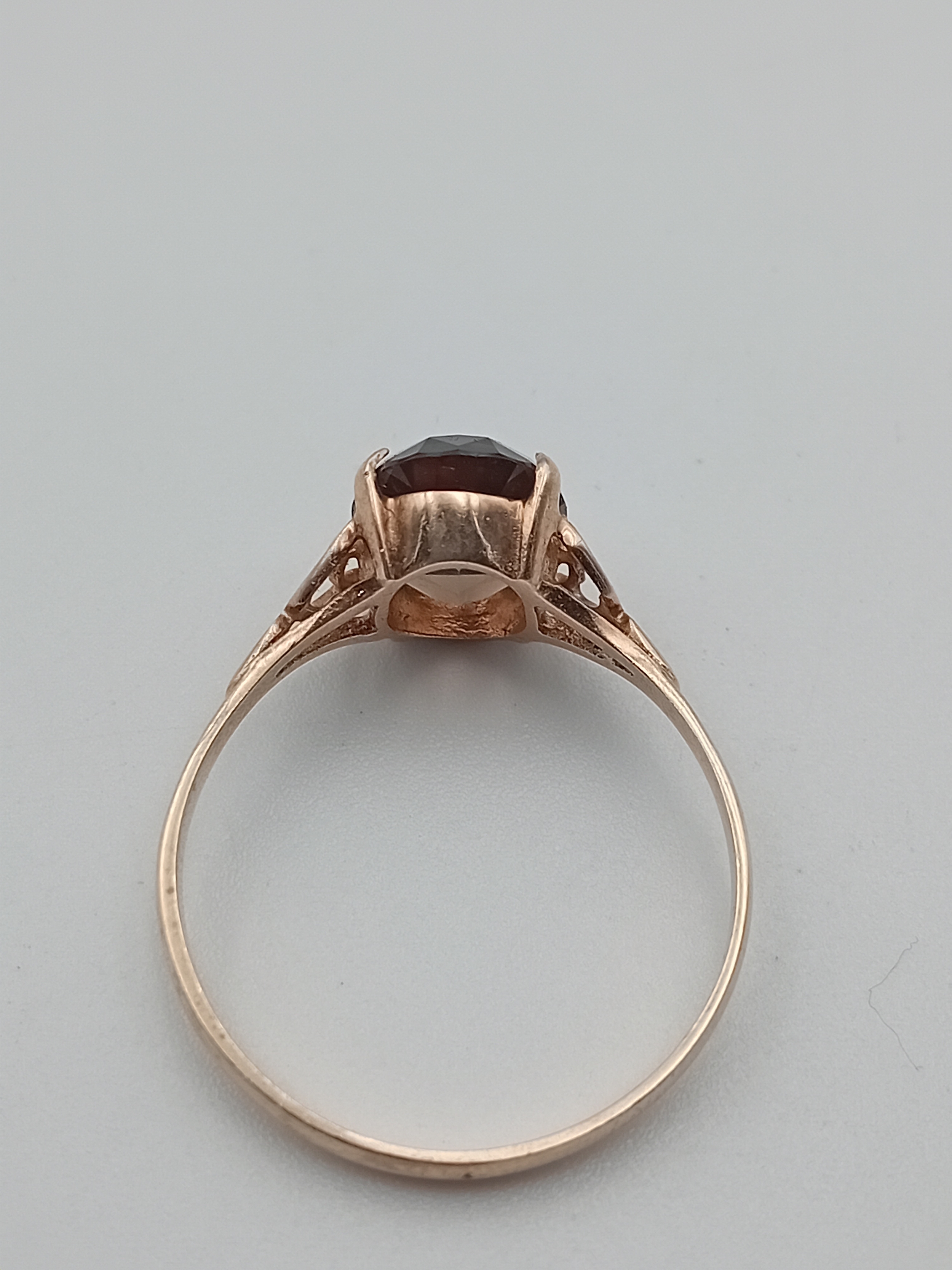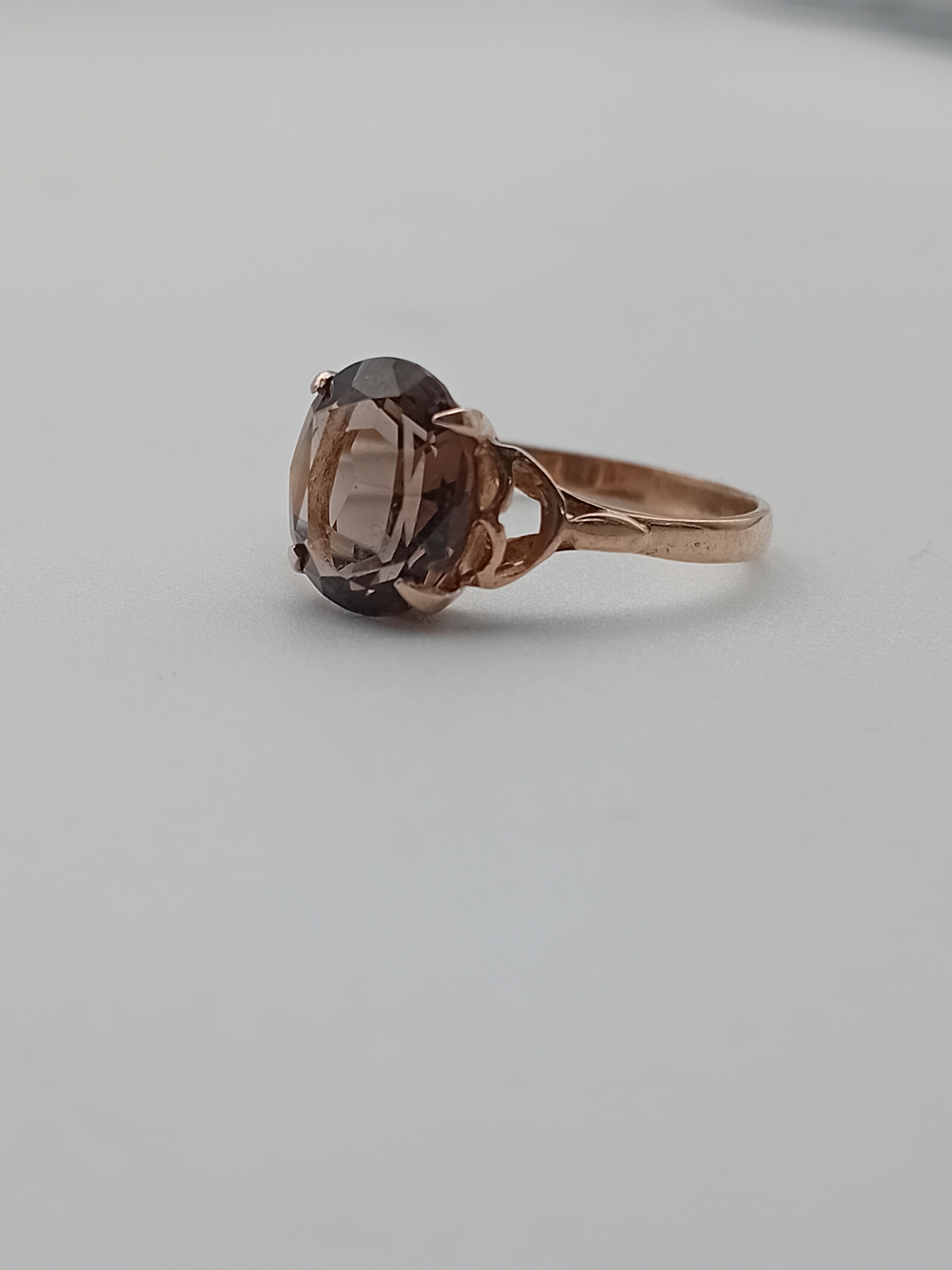 A tested 9ct gold ring set with smokey Quartz. Size T