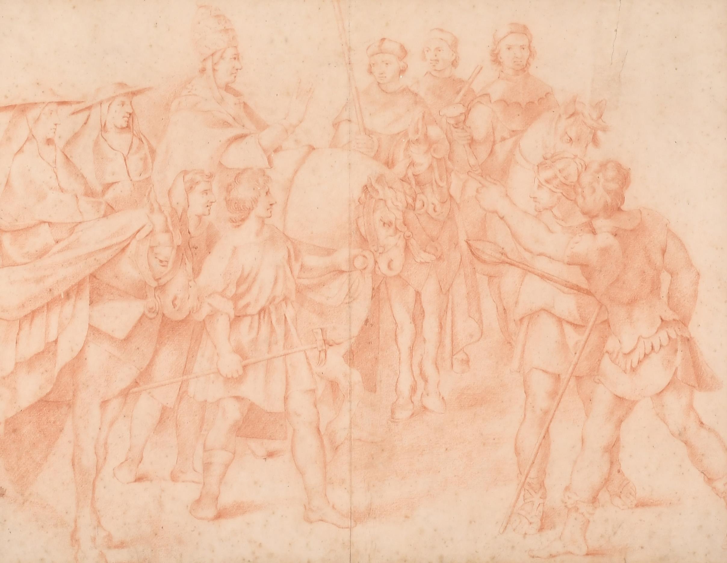 Circle of Odoardo Fialetti (1573-1638) Italian. The Pilgrimage, Sanguine on joined paper, 13.75" x 17.5" (34.9 x 44.4cm)