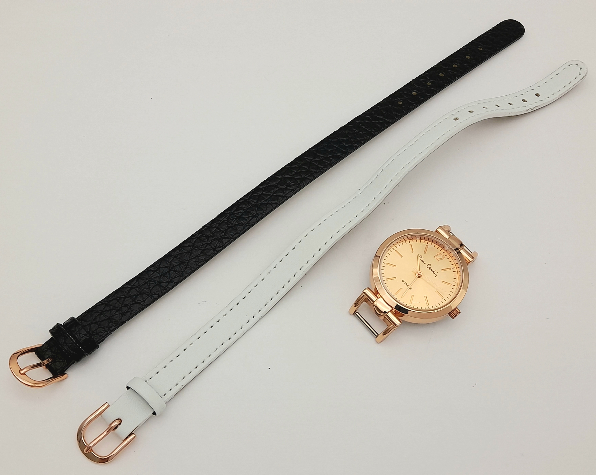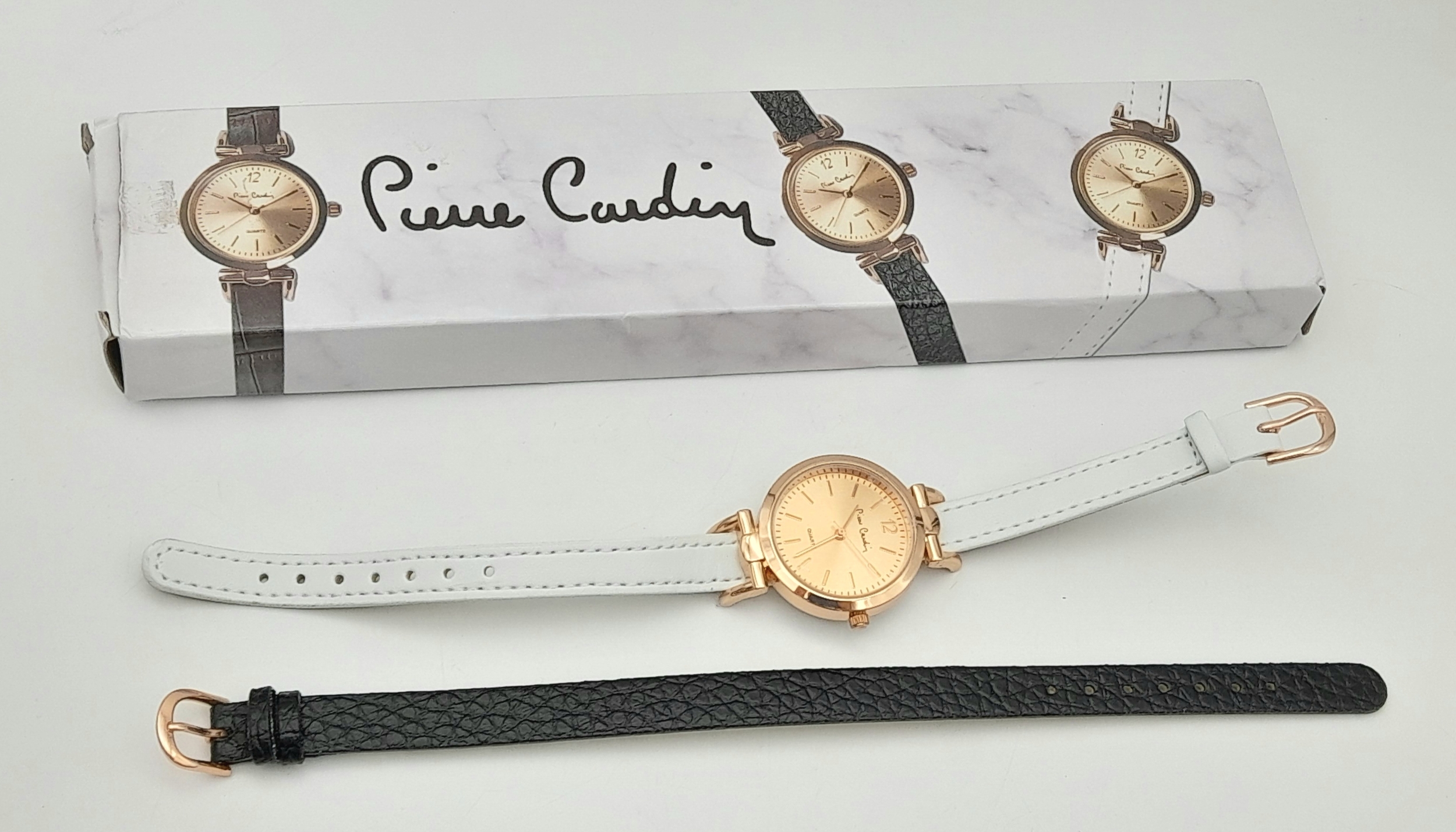 A PIERRE CARDIN WATCH - BRAND NEW WITH 1 EXTRA DIFFERENT COLOUR STRAP. IN ORIGINAL BOX - IN FULL WORKING ORDER. S/A 1260-1.
