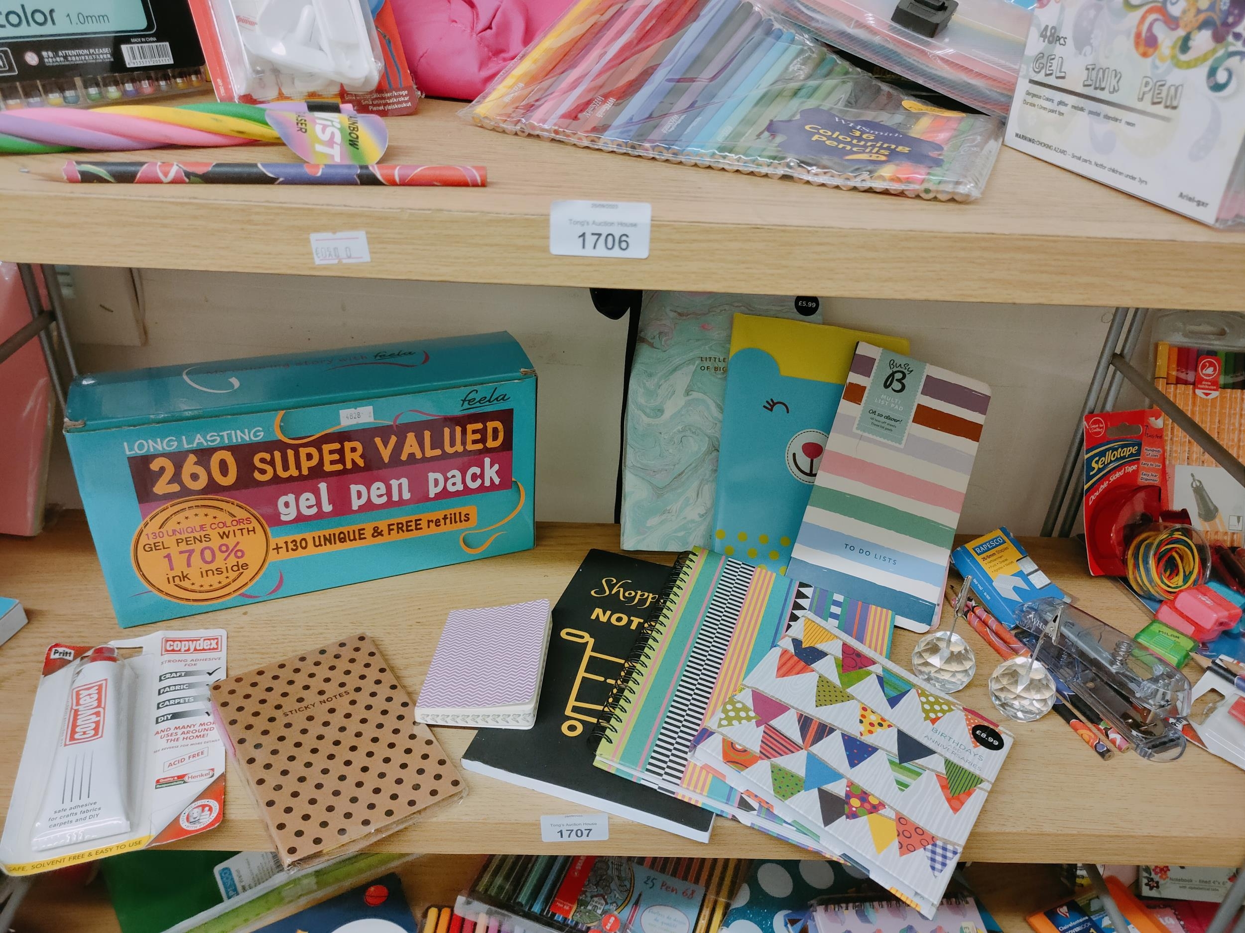 A huge pack of 260 gel pens with refills, a selection of fun notebooks and some copydex glue