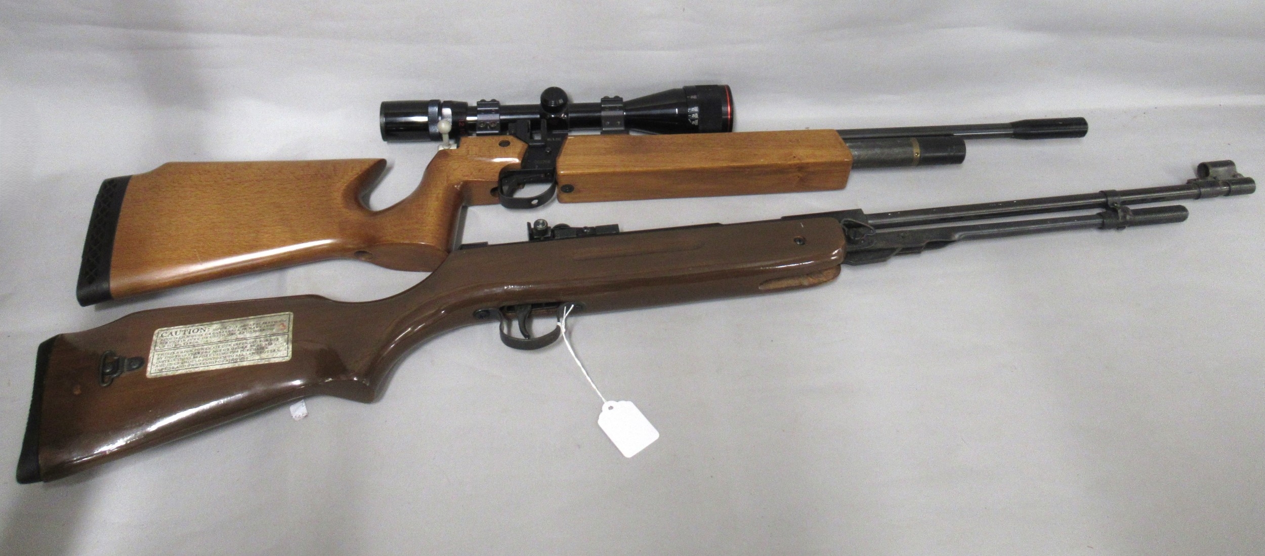 Czechoslovakian gas powered .22 air rifle with Deerfield sight in case, together with another air rifle inscribed ' Snow Peak ' with wooden stock, uncased