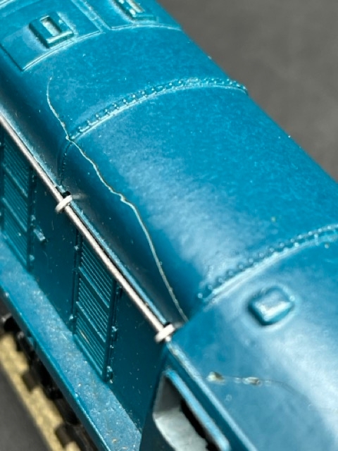 Another Wrenn Class 20 formally Green re-painted in BR blue numbered 20 165 - Crack to body shell as shown