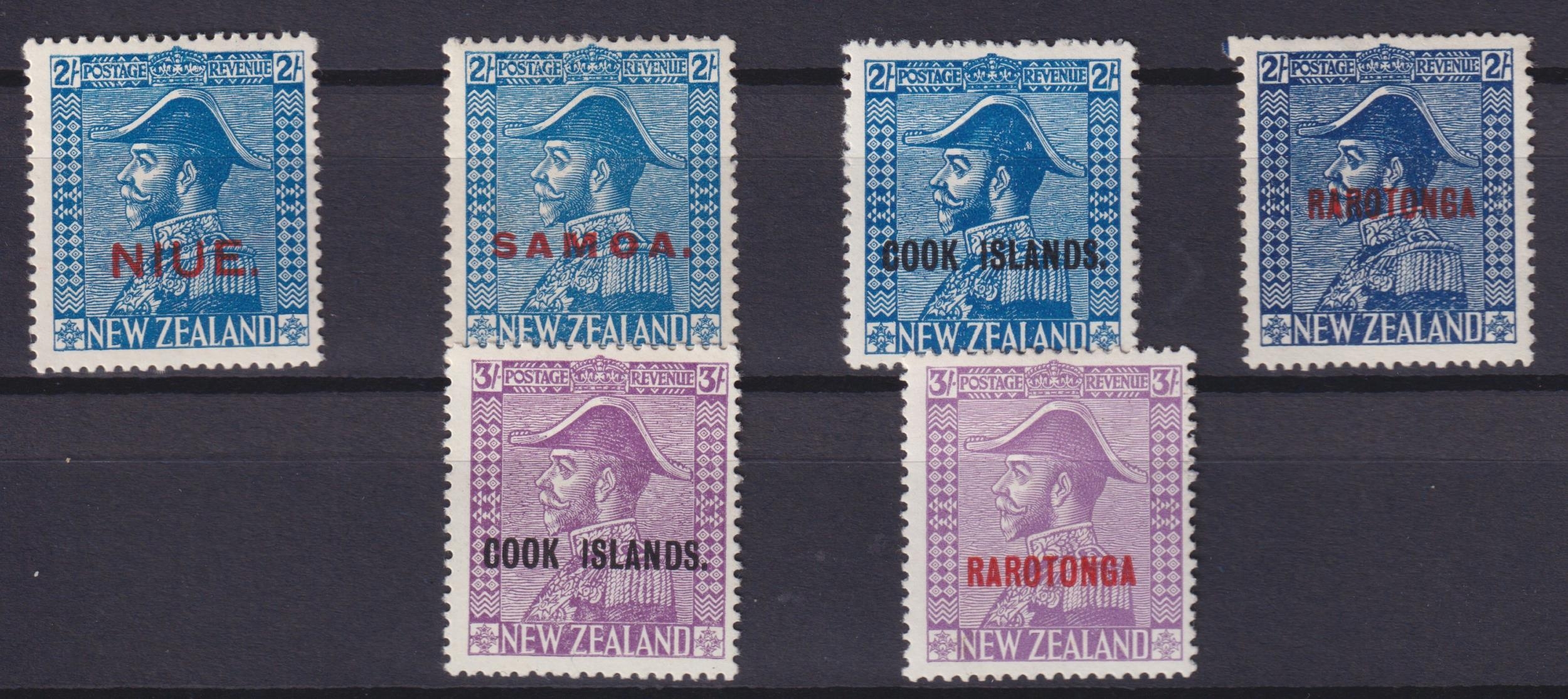 1926/8 KGV ovpt 2/- and 3/- mint from Cook Islands and Rarotonga, also 2/- from Niue and Samoa.
