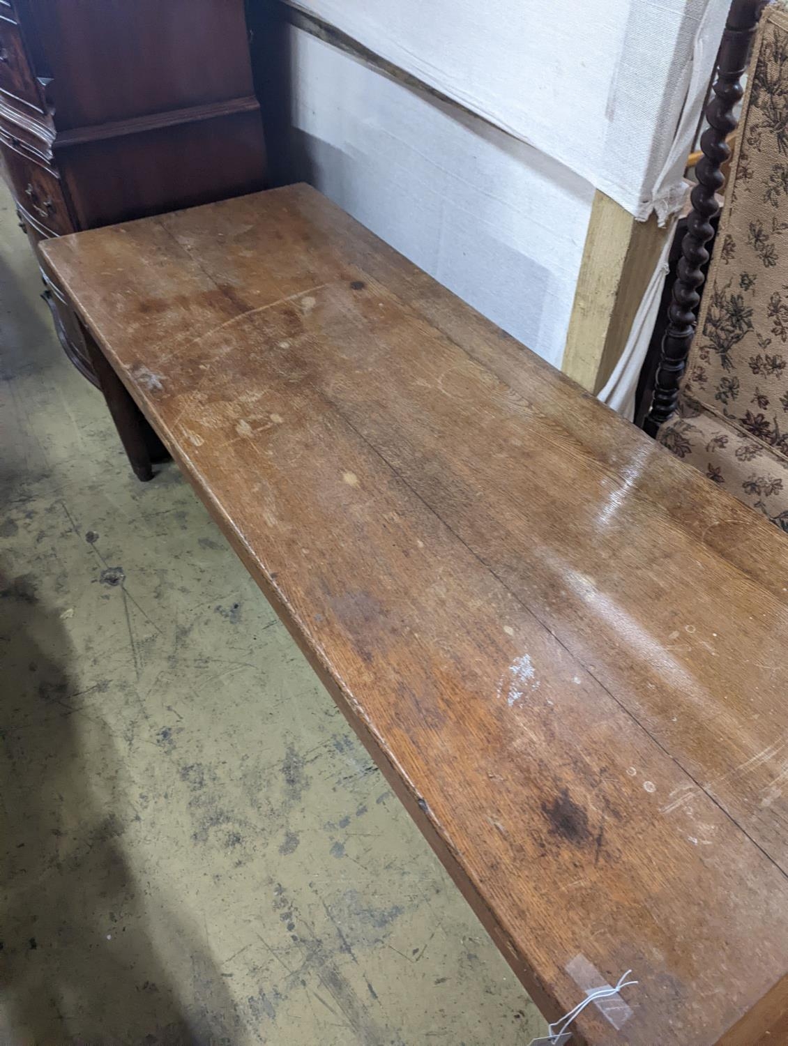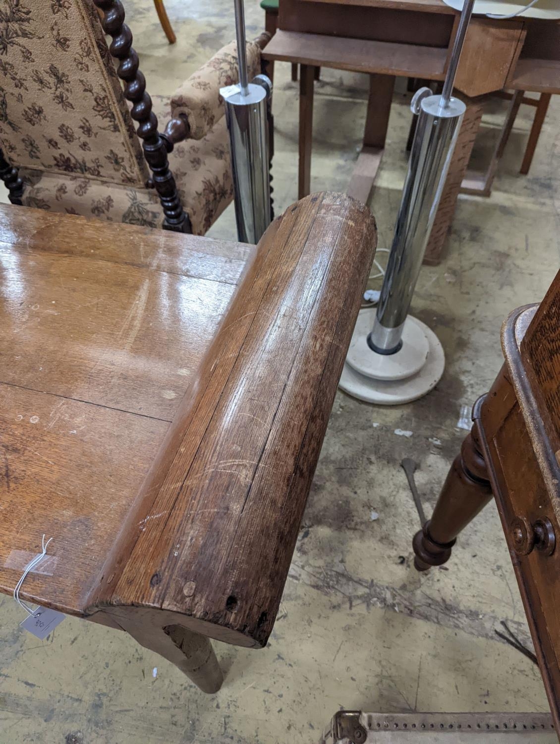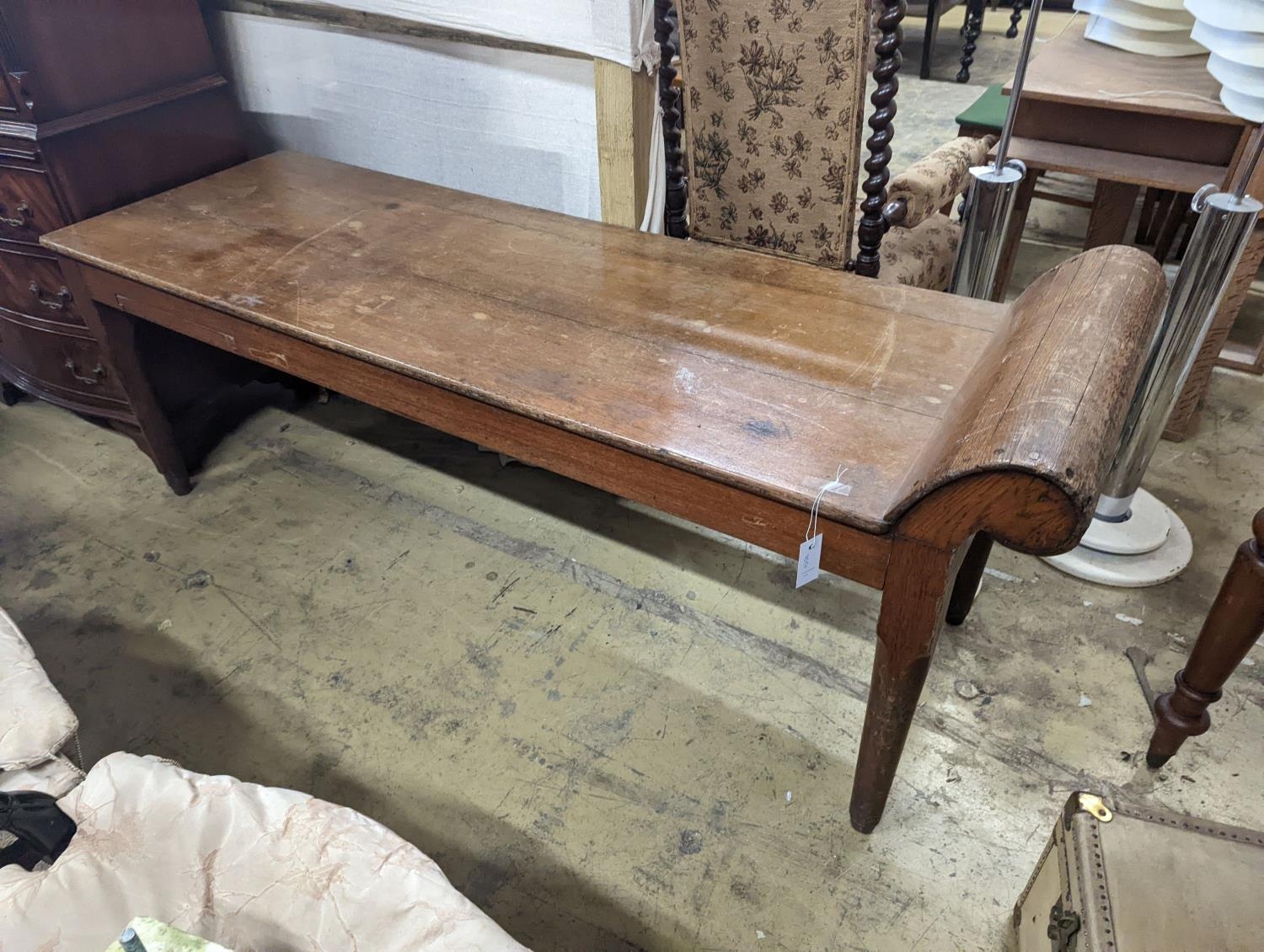 An early 20th century oak examination table, length 180cm, depth 59cm, height 74cm